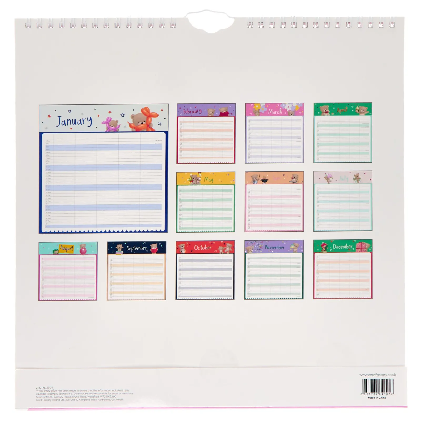 Card Factory Hugs Family Organiser 2026