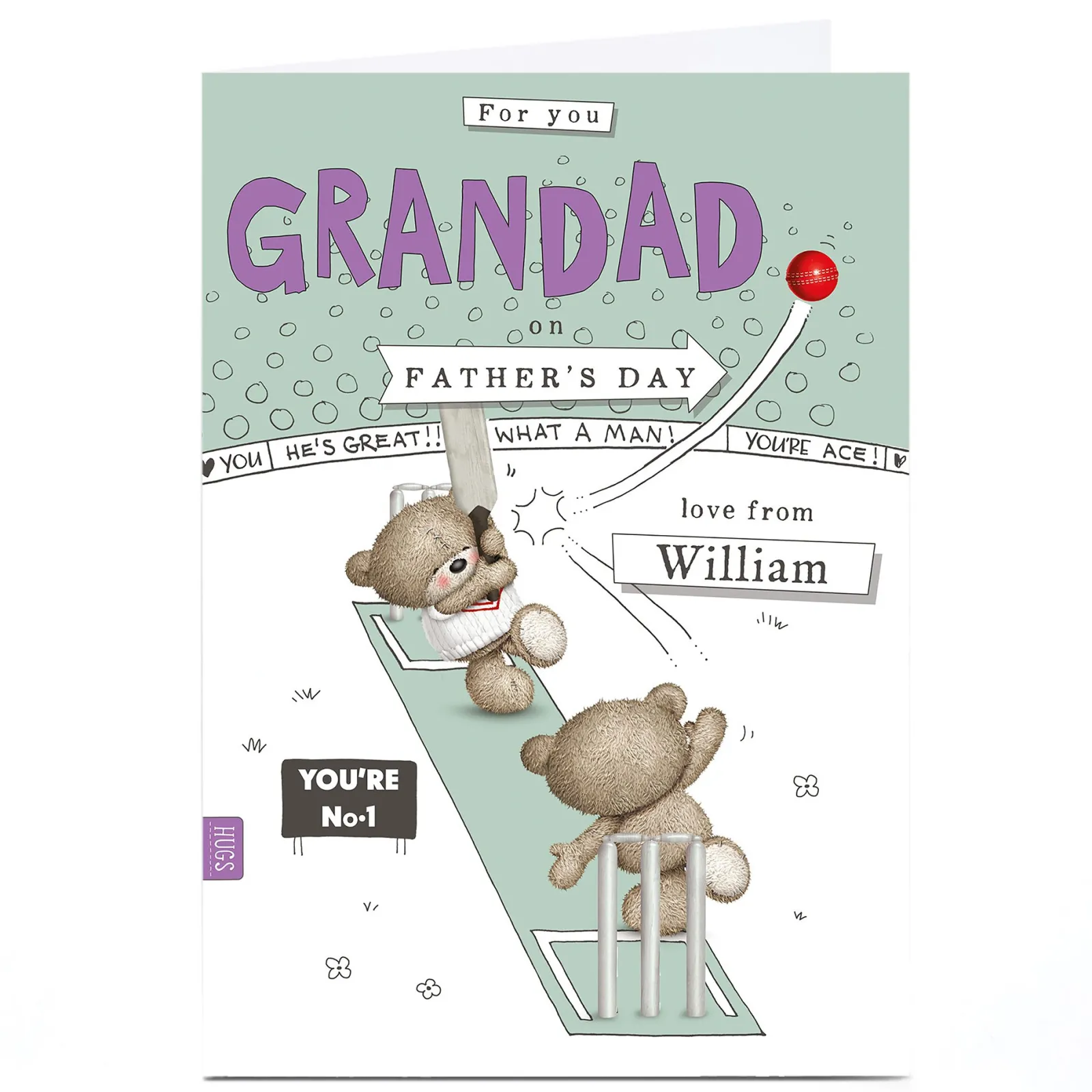 Card Factory Hugs Personalised Father’s Day Card – Cricket Bears Grandad