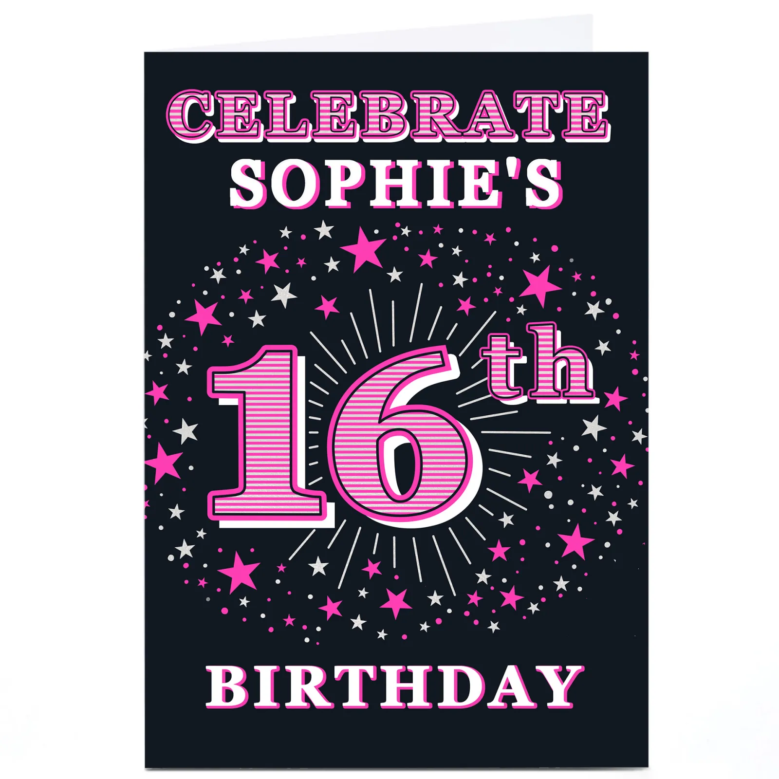 Card Factory Personalised 16th Birthday Invitation – Pink Stars