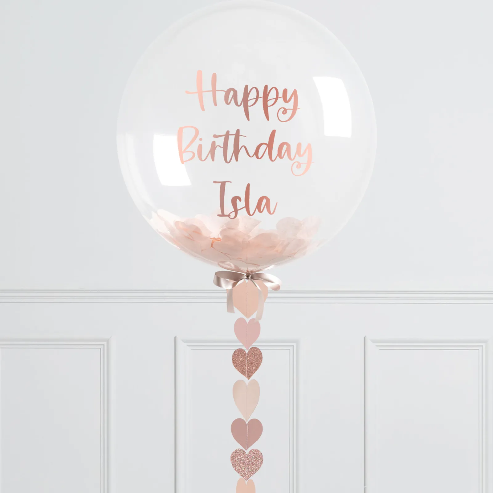 Card Factory Personalised 20-Inch Rose Gold Heart Confetti Bubblegum Balloon – DELIVERED INFLATED!