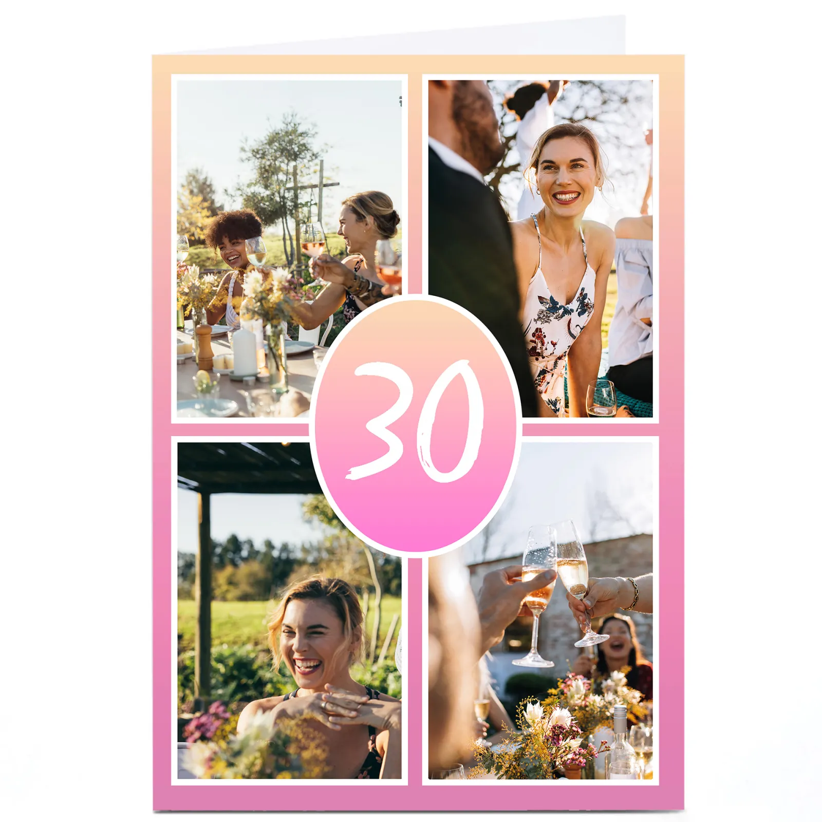 Card Factory Personalised 30th Milestone Age Photo Card – Pink Gradient, Editable Age