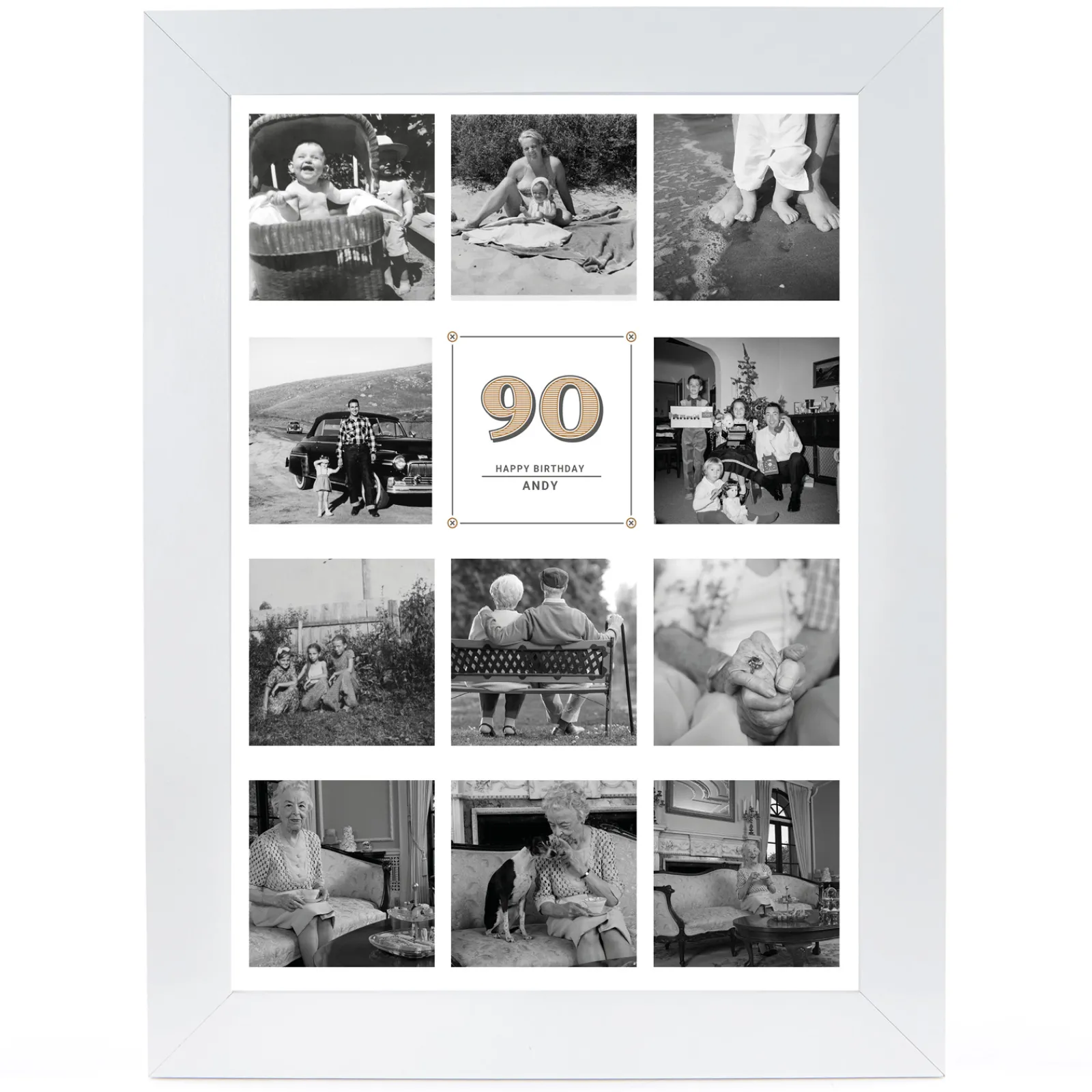 Card Factory Personalised 90th Birthday Milestone Age Photo Print – Vintage Collage, Editable Age