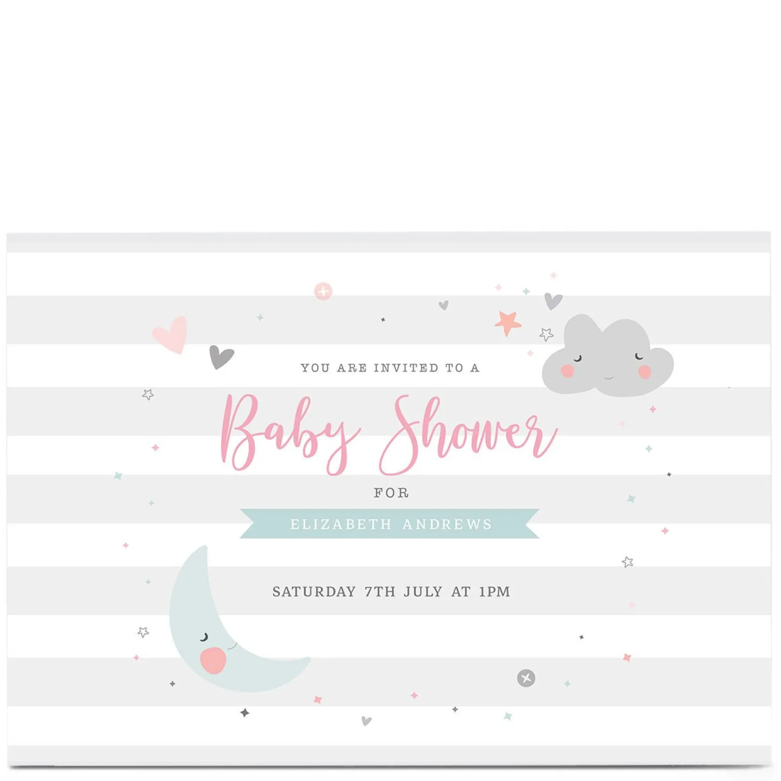Card Factory Personalised Baby Shower Invitation – Cloud & Moon