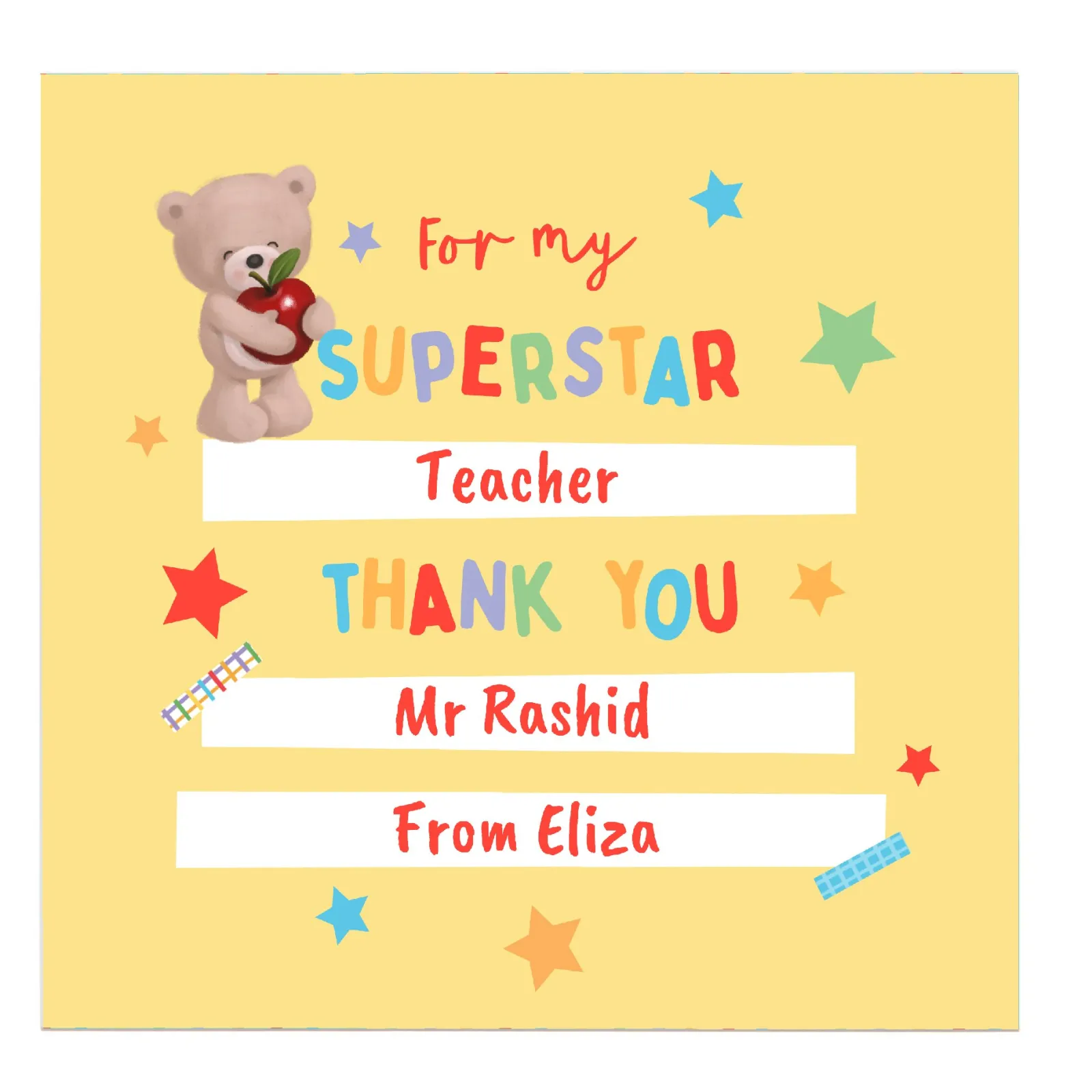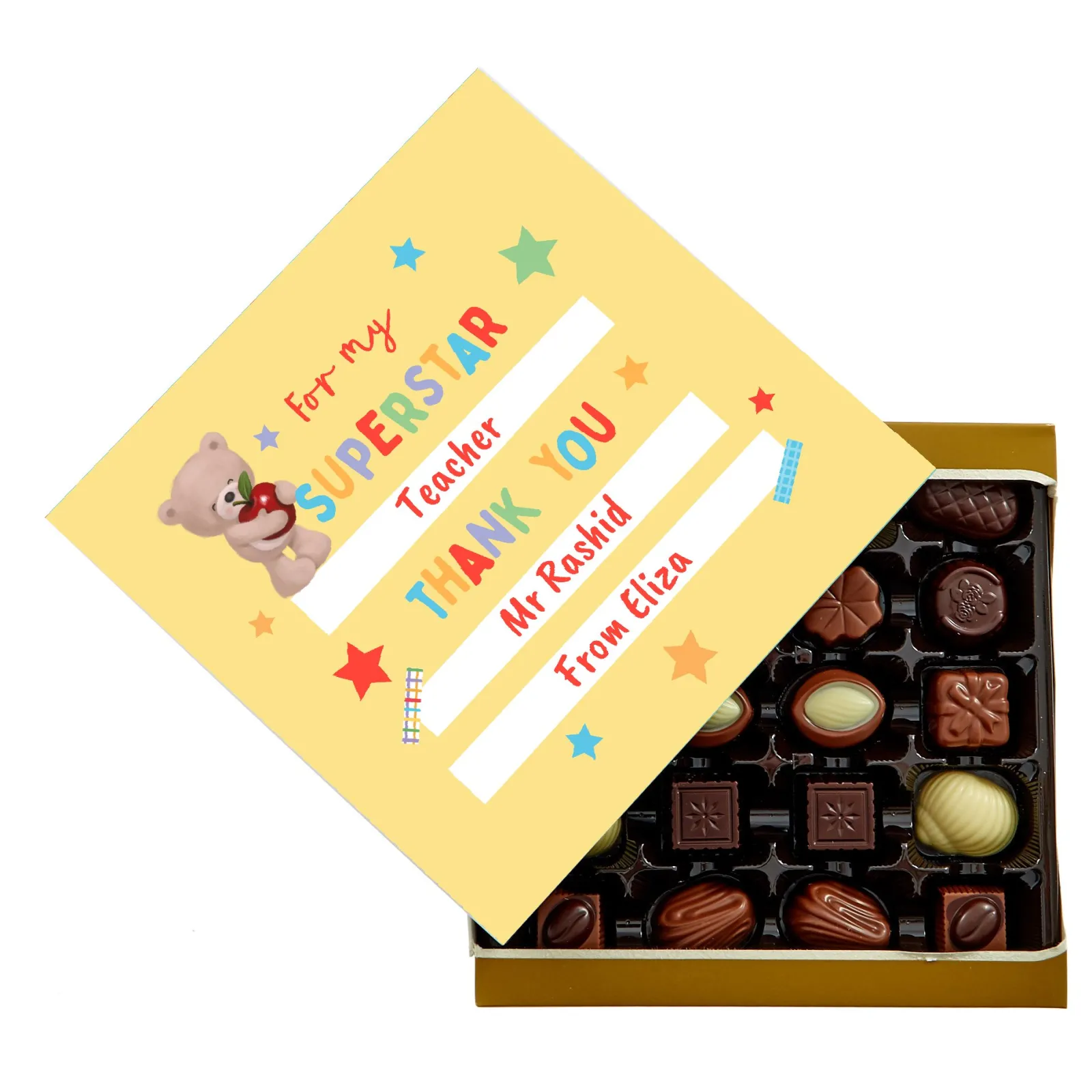 Card Factory Personalised Belgian Chocolates – Hugs Bear Superstar Teacher