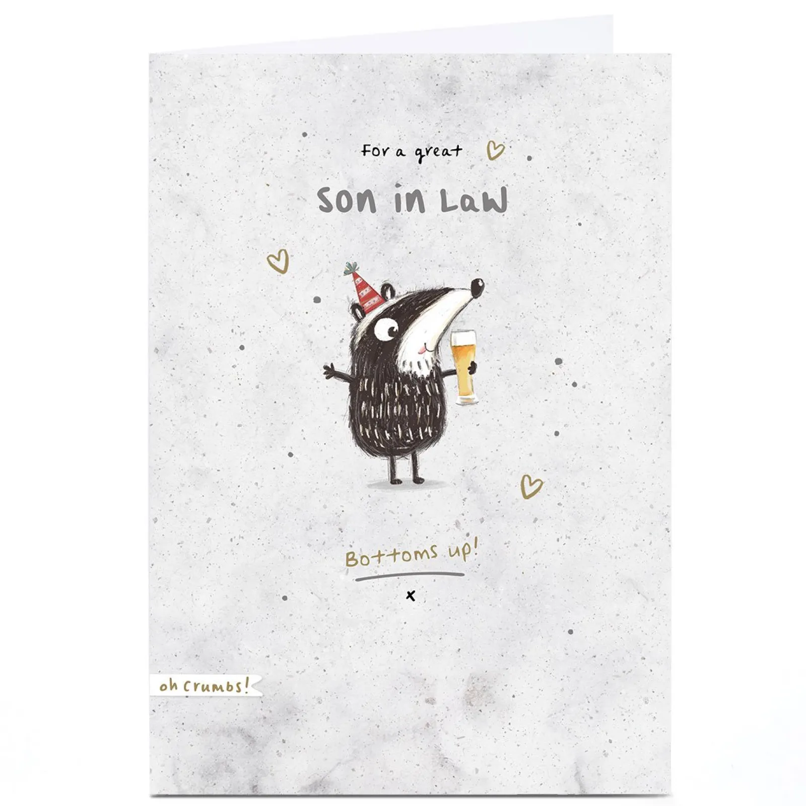 Card Factory Personalised Birthday Card – Badger and Beer Bottoms Up, Son-in-Law