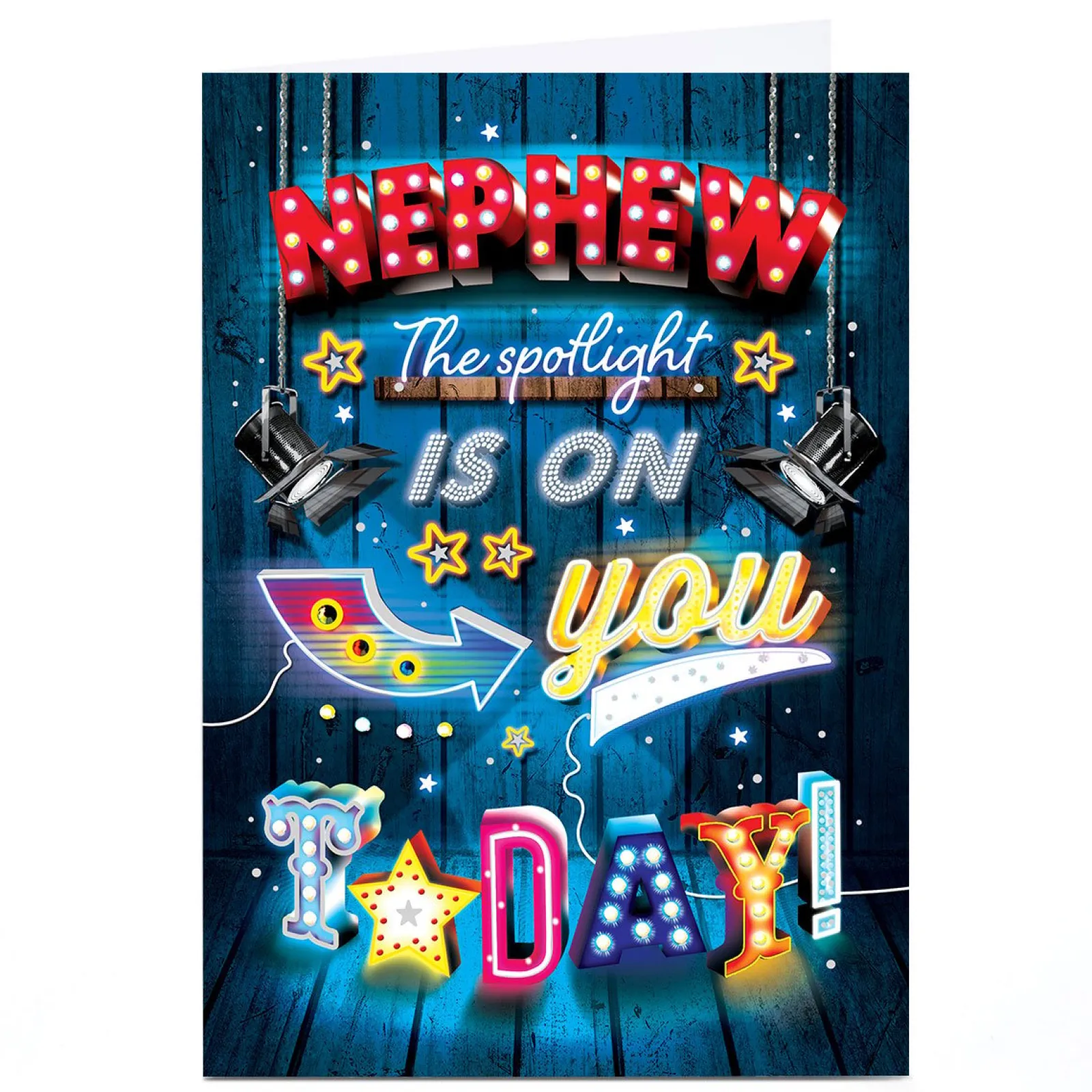 Card Factory Personalised Birthday Card – Spotlight On You Today, Nephew