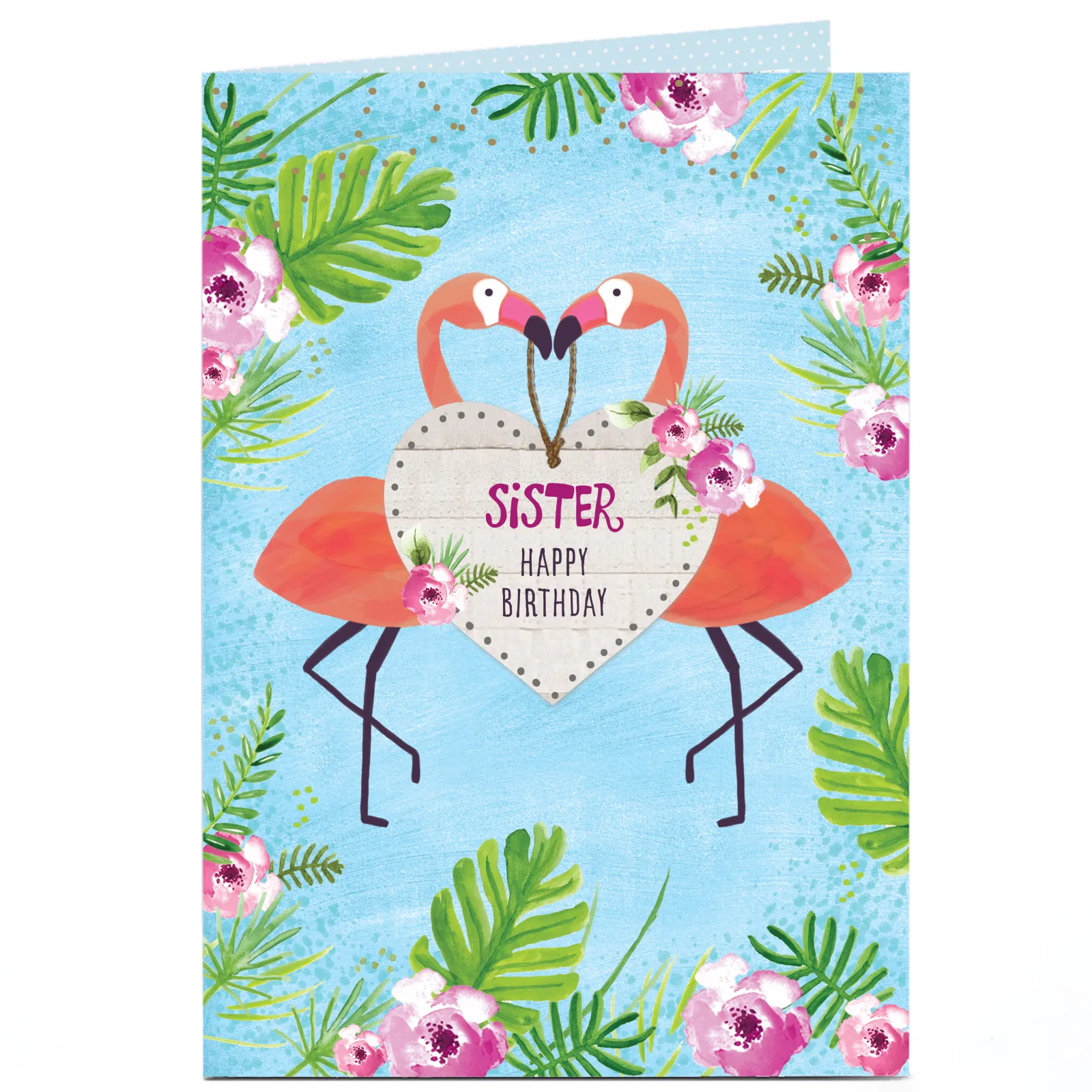 Card Factory Personalised Birthday Card – Tropical Flamingos, Sister |