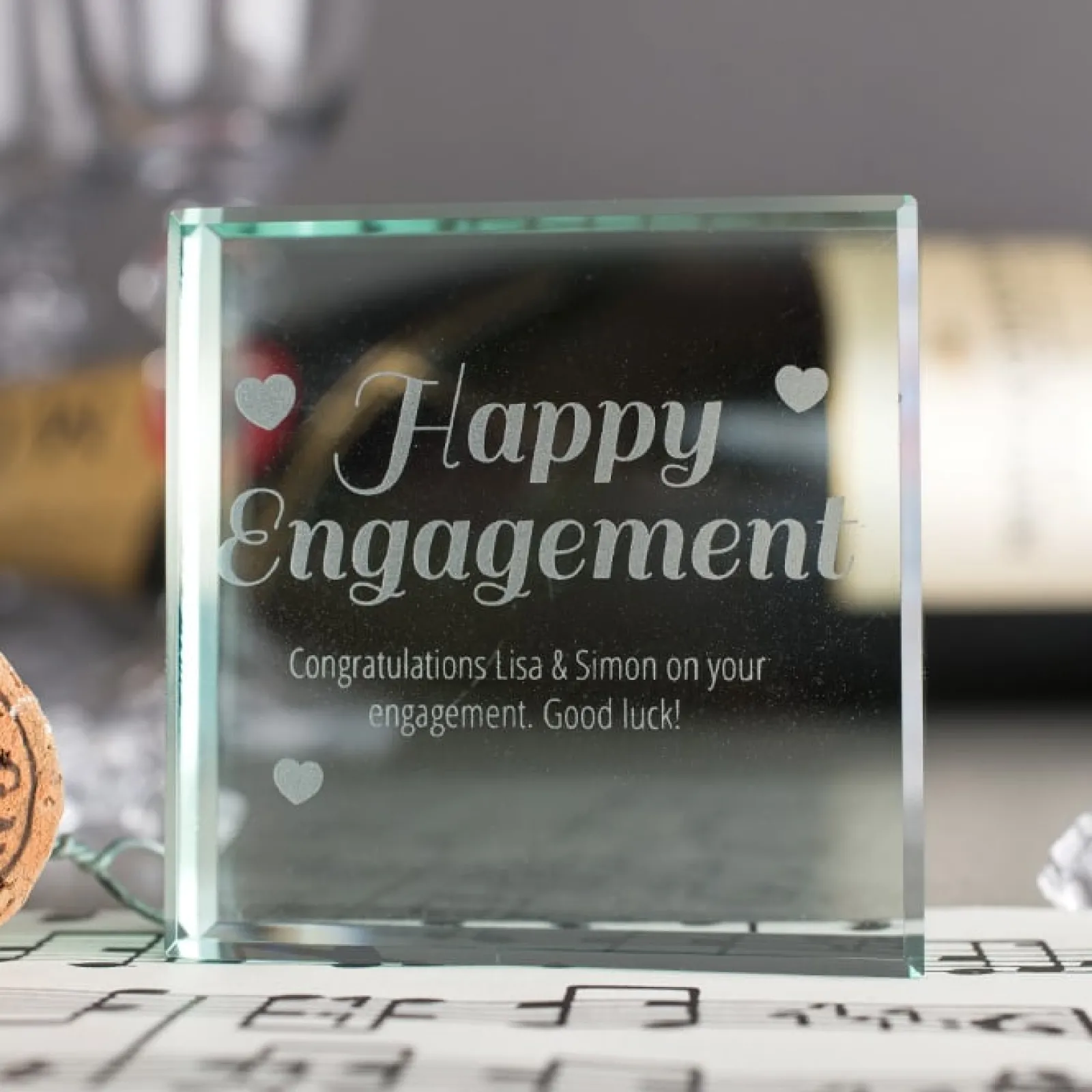 Card Factory Personalised Engraved Glass Token – Happy Engagement