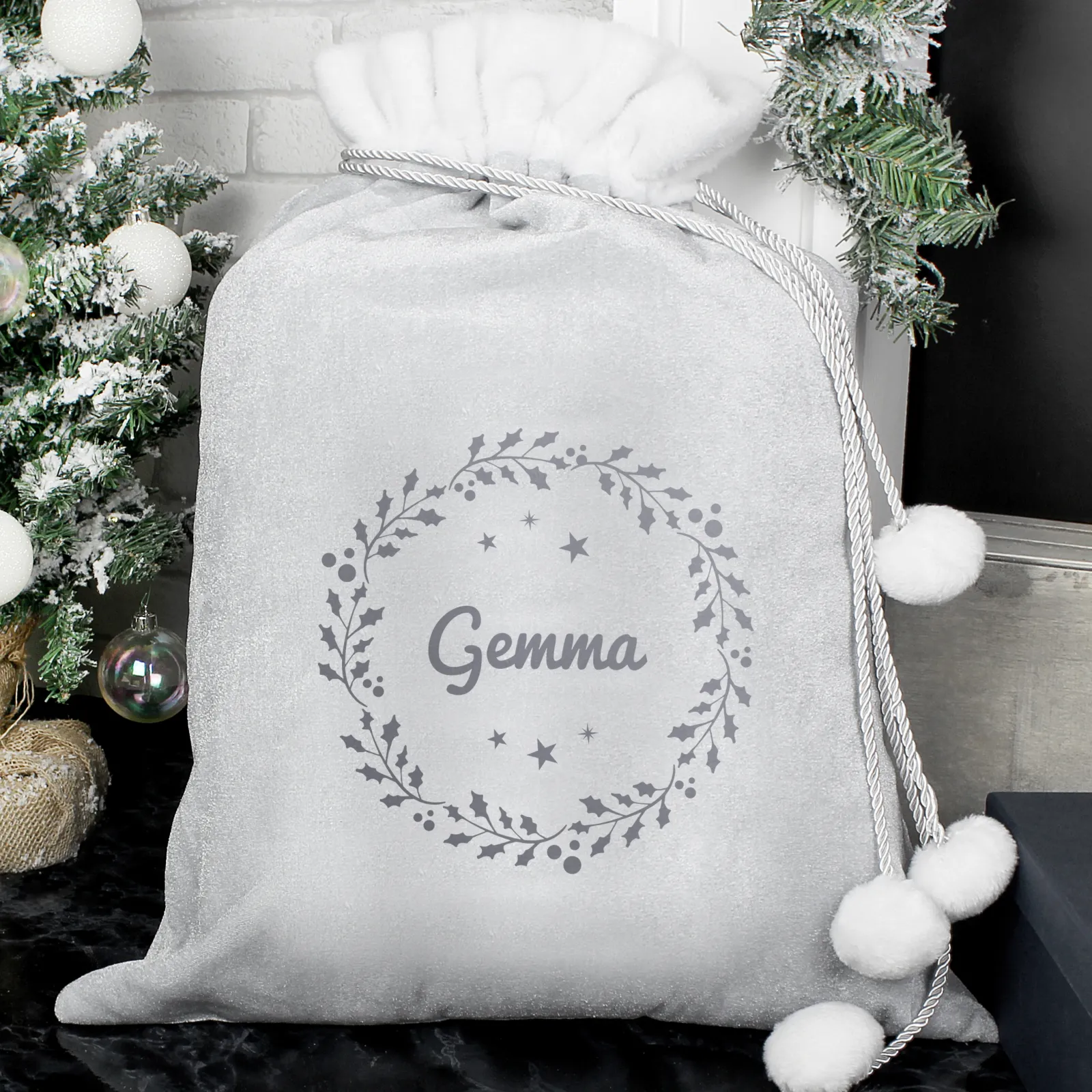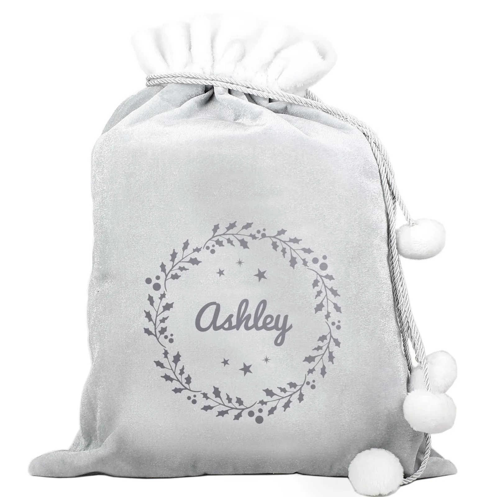 Card Factory Personalised Holly Grey Christmas Sack