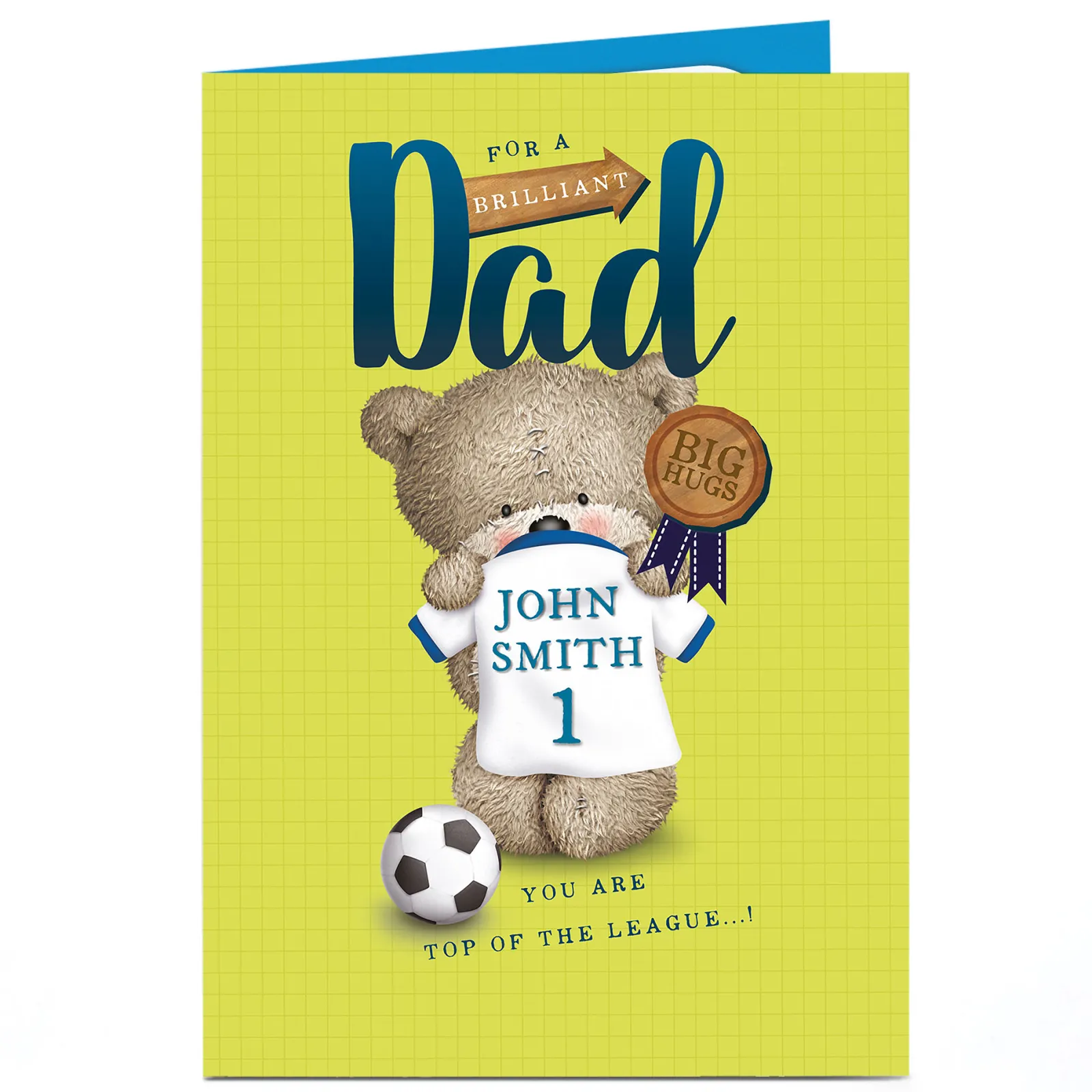Card Factory Personalised Hugs Bear Card – Dad Top Of The League