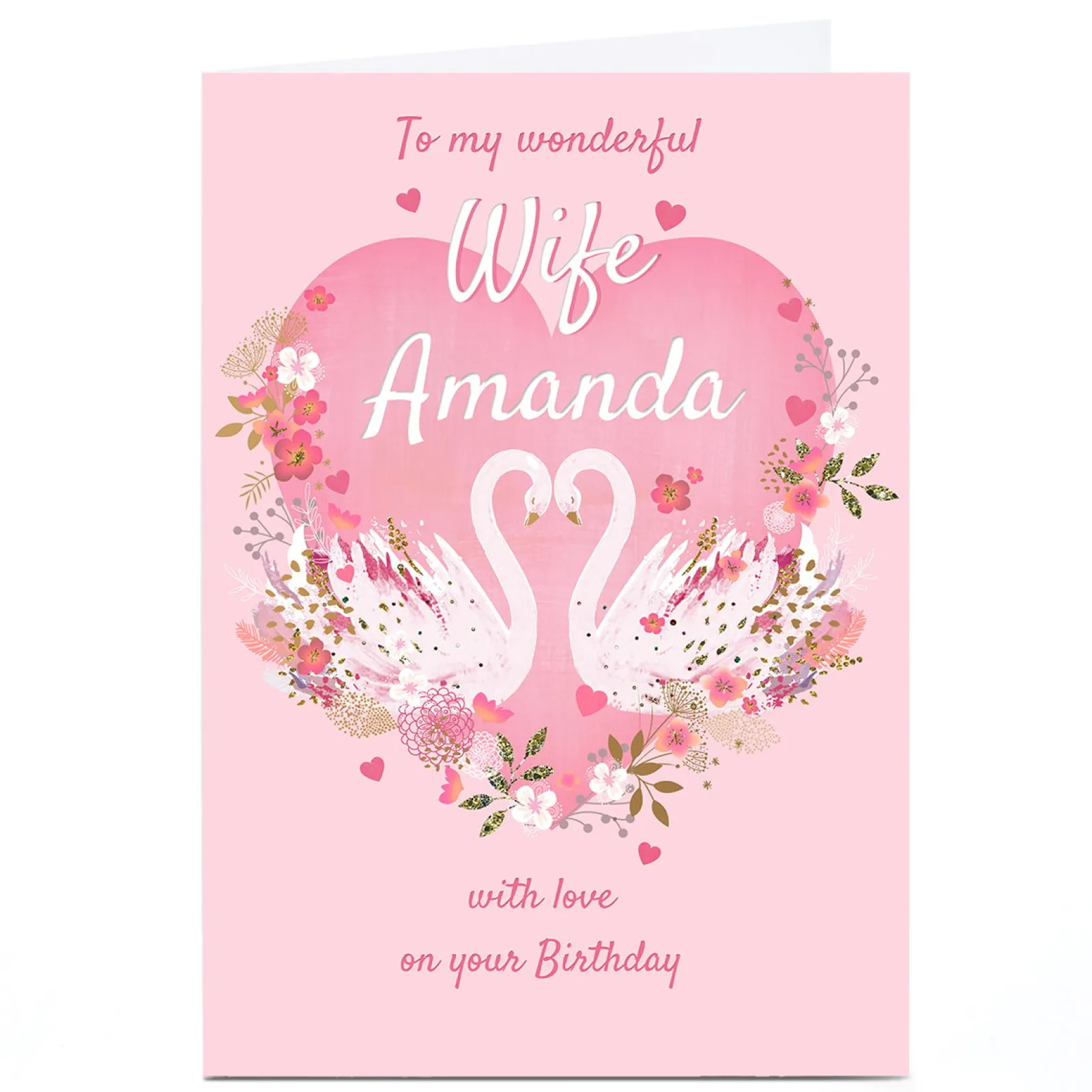 Card Factory Personalised Kerry Spurling Birthday Card – Swans, Wife