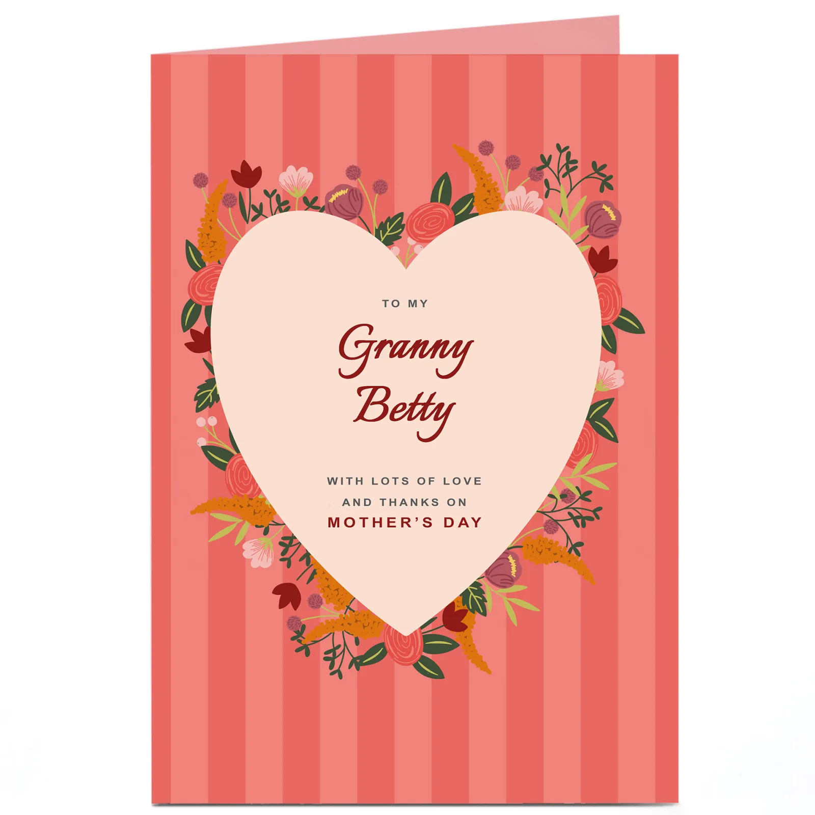 Card Factory Personalised Mother’s Day Card – Red Floral and Stripe