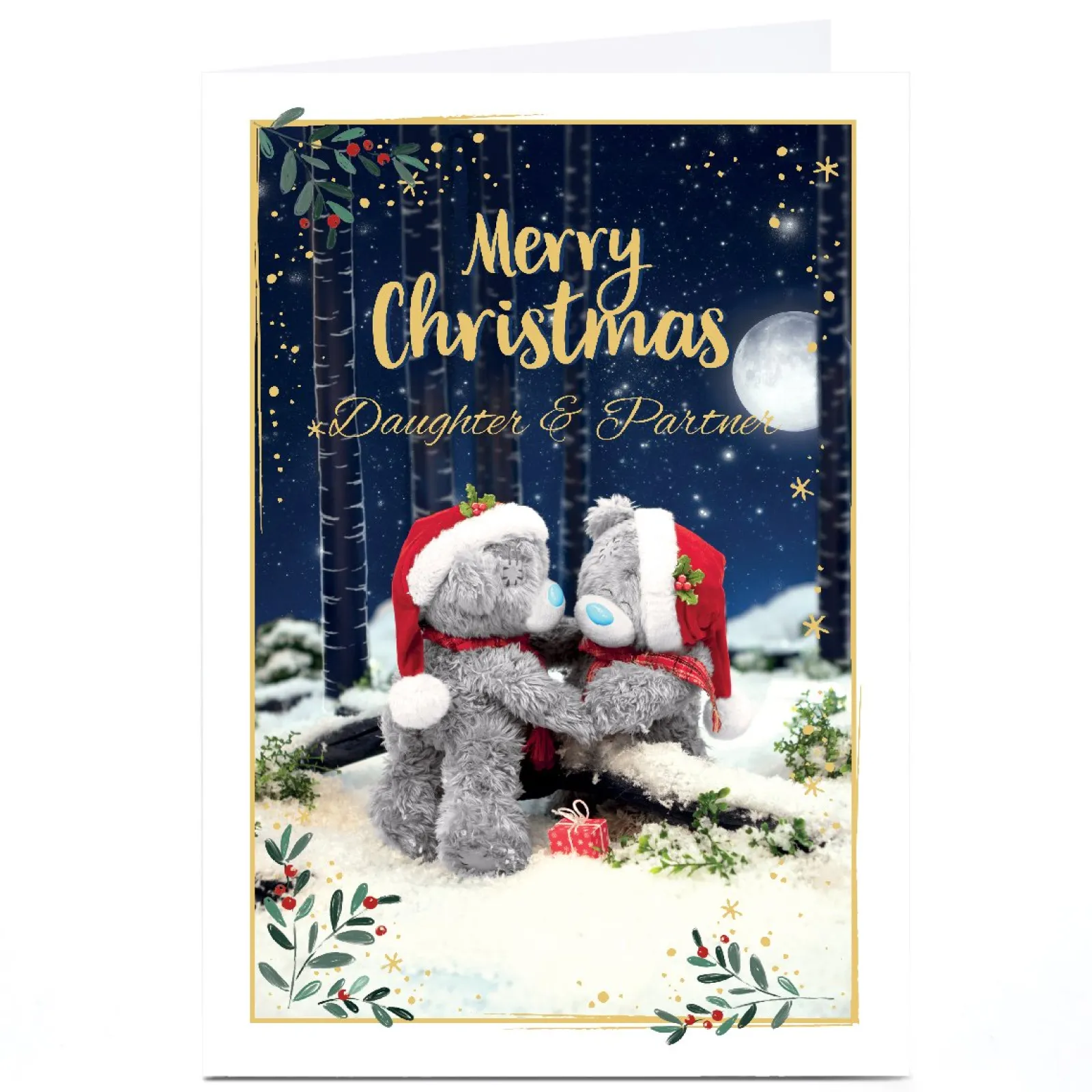 Card Factory Personalised Tatty Teddy Christmas Card – Teddy Couple, Daughter and Partner