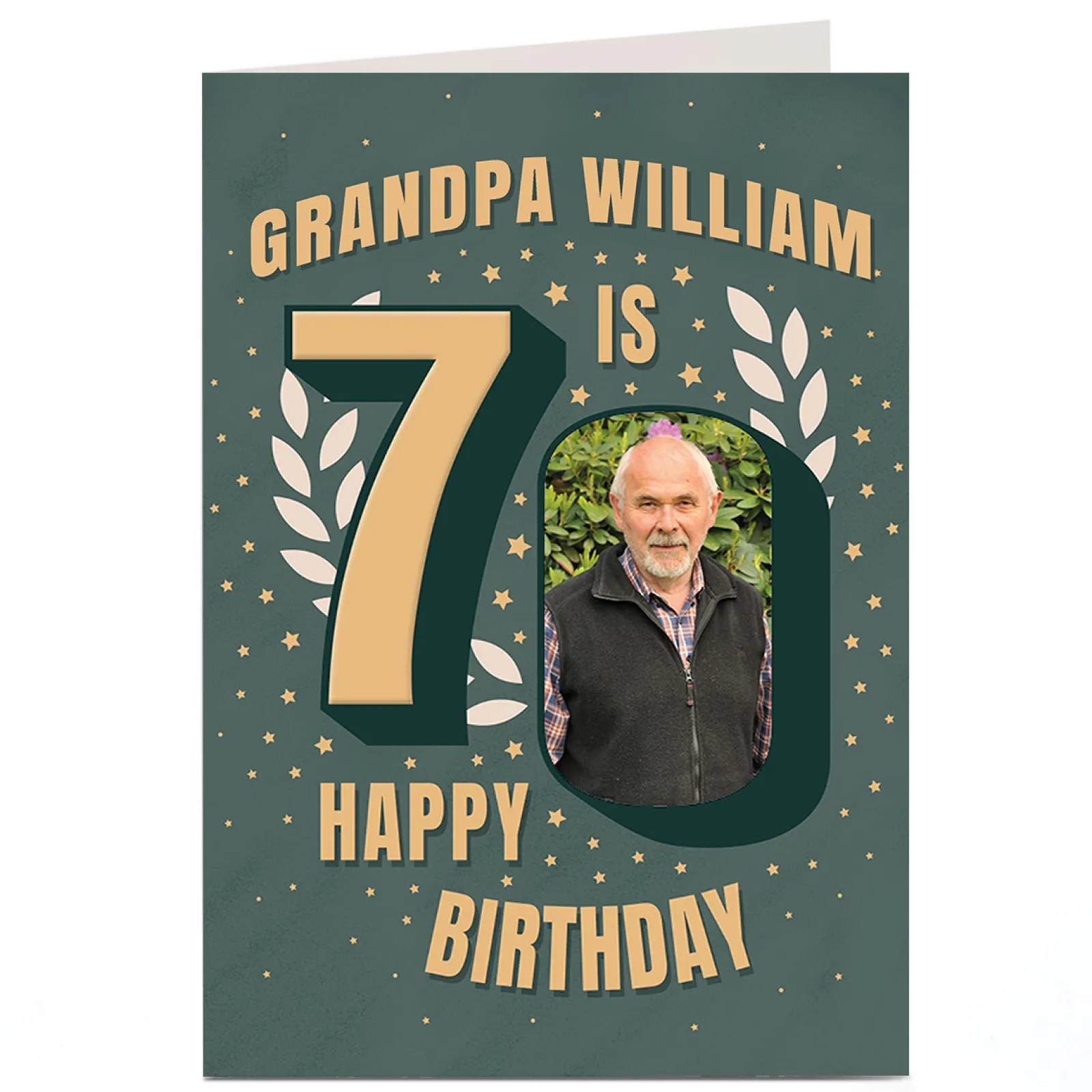 Card Factory Photo 70th Birthday Card – Grandpa Laurel Wreath