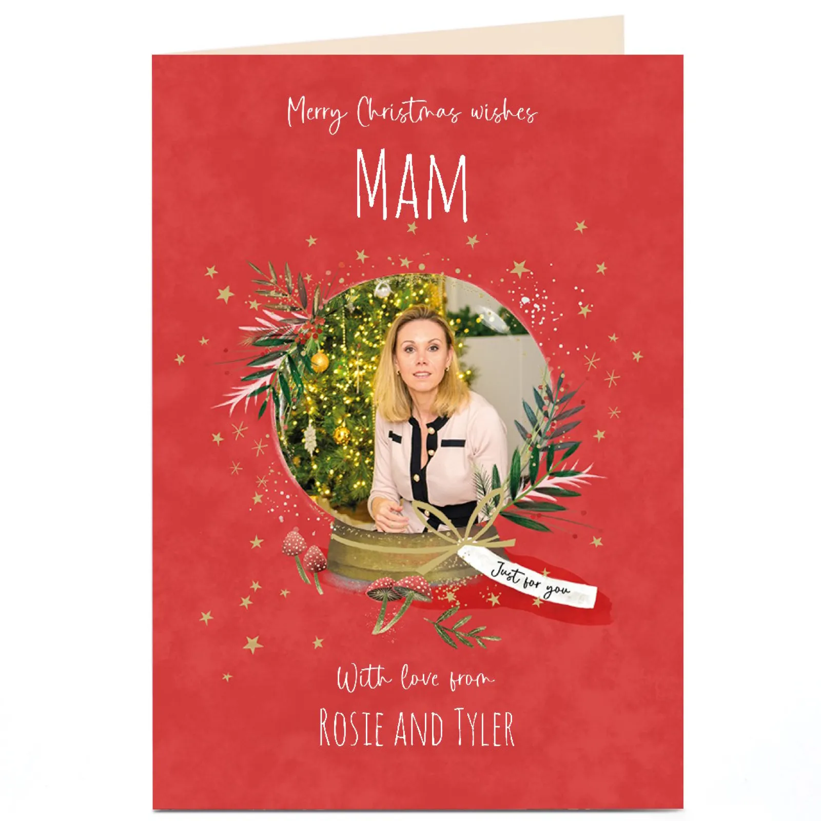 Card Factory Photo Christmas Card – Festive Snowglobe, Mam