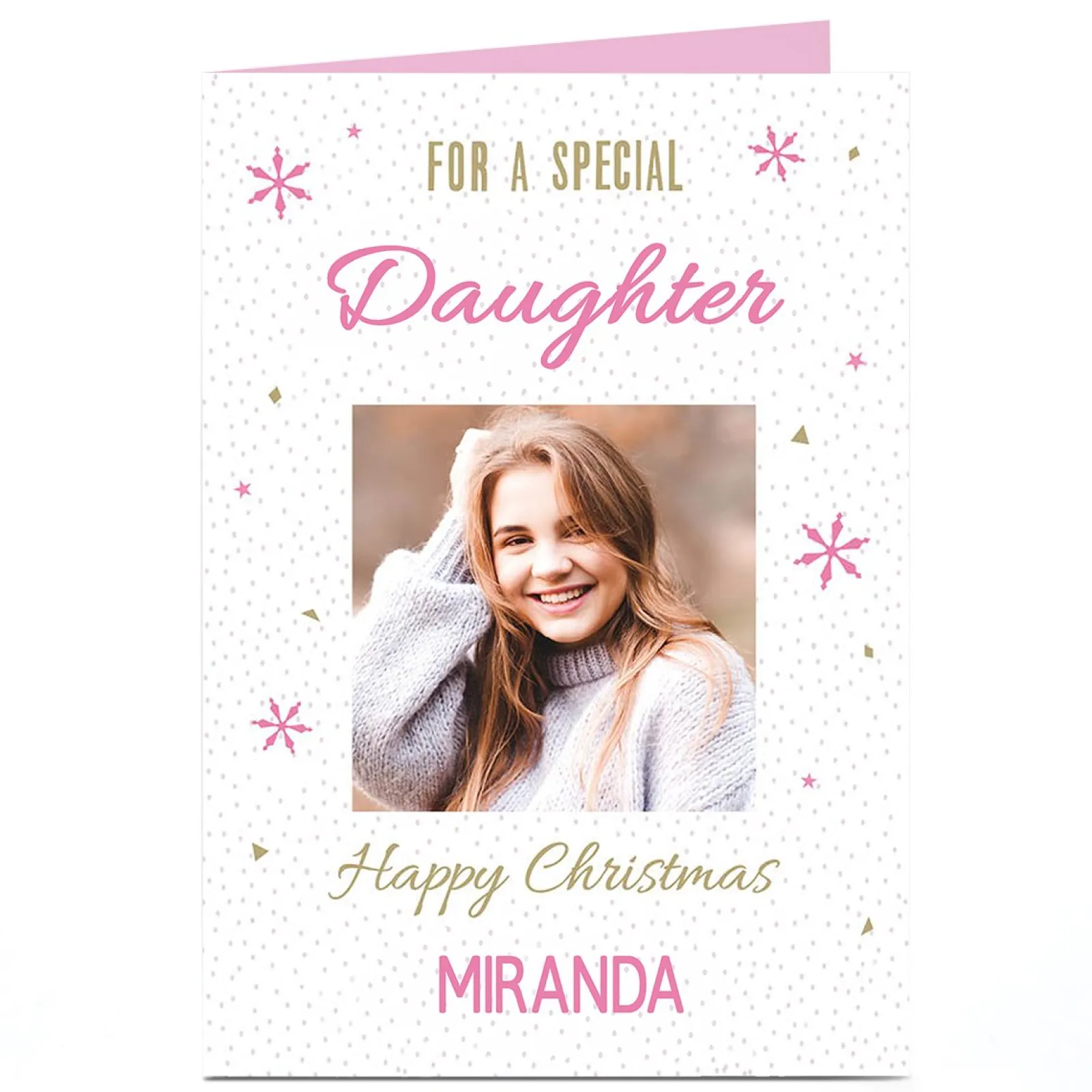 Card Factory Photo Christmas Card – Snowflakes & Dots, Daughter
