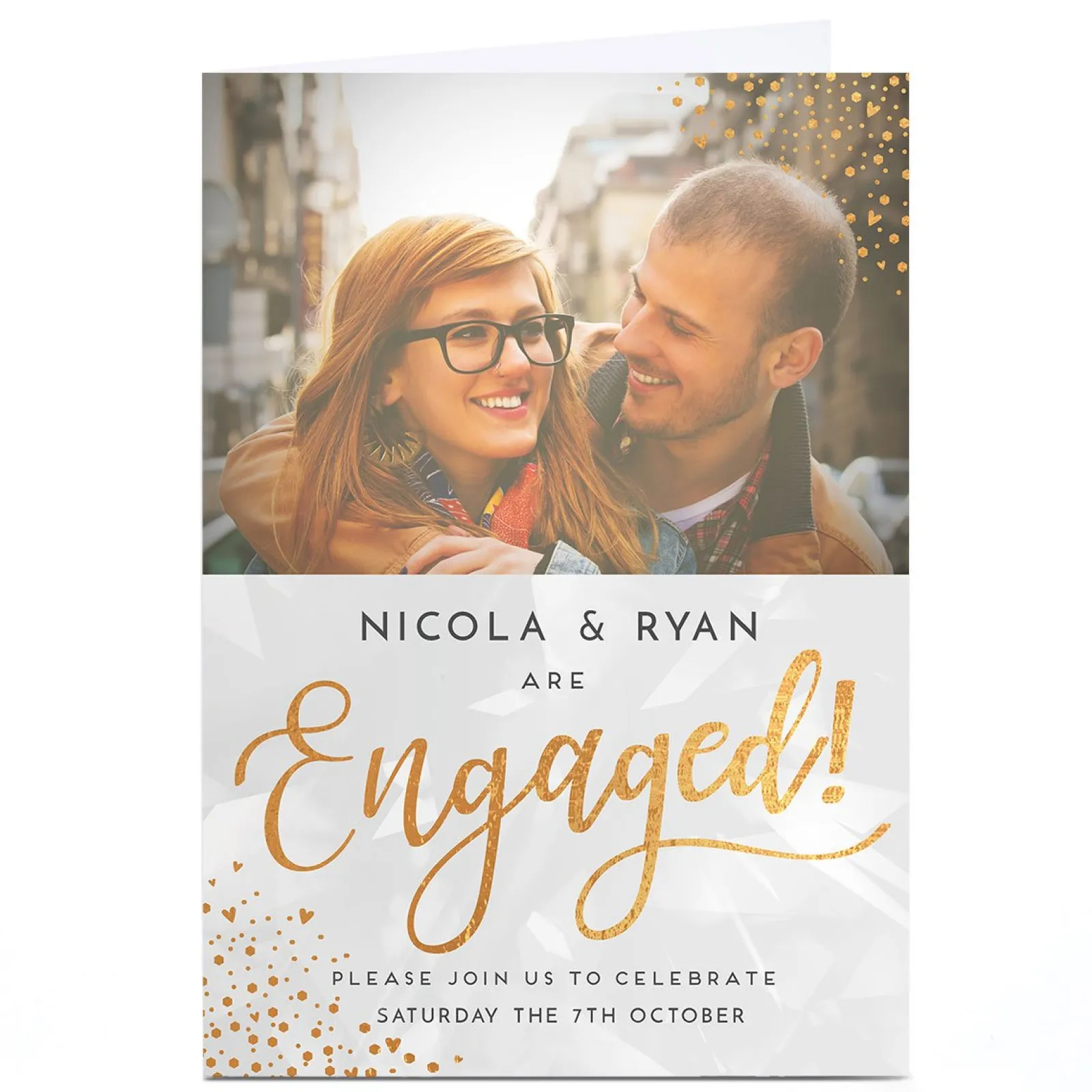 Card Factory Photo Engagement Party Invitation – Gold Hearts