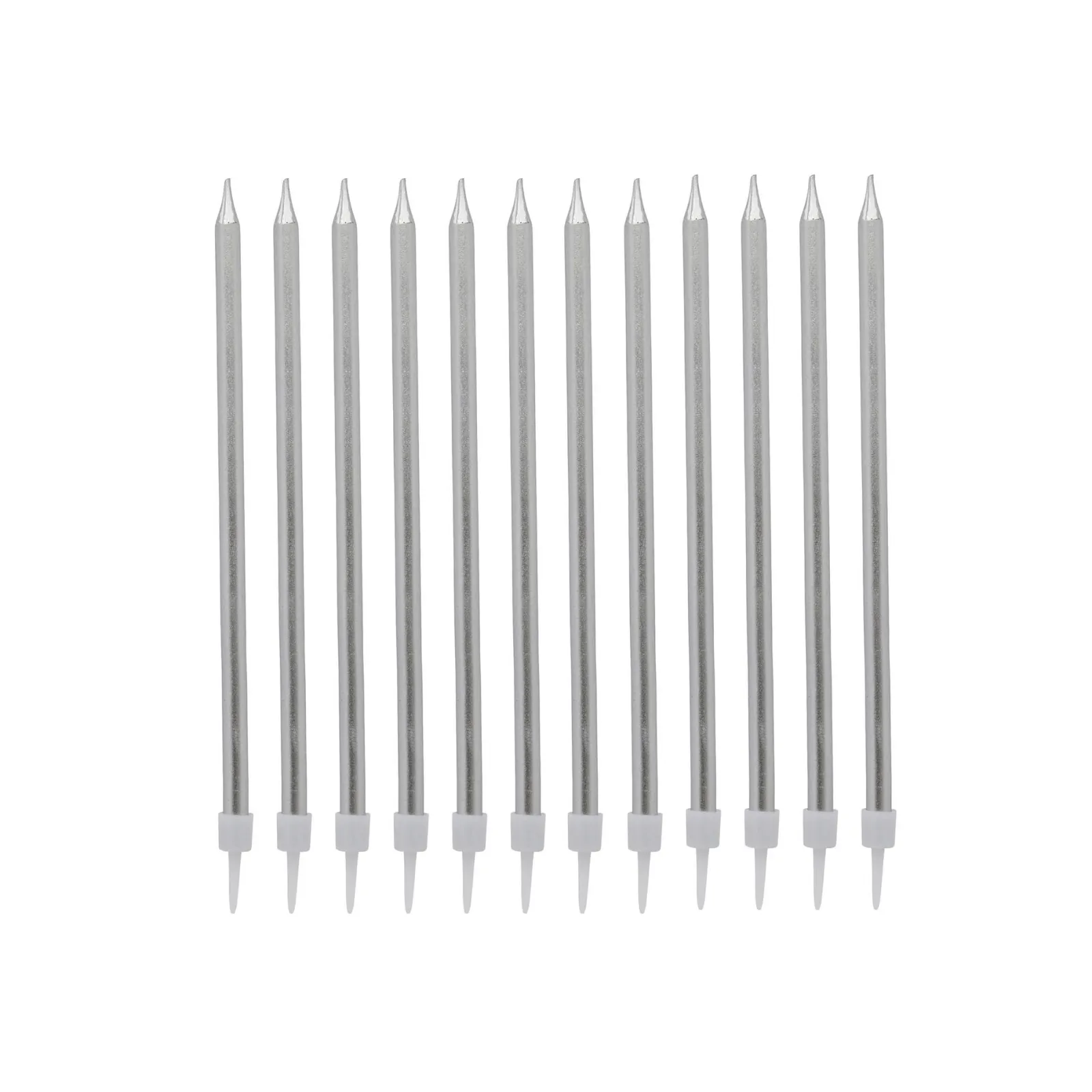 Card Factory Silver Tall Skinny Cake Candles – Pack of 12