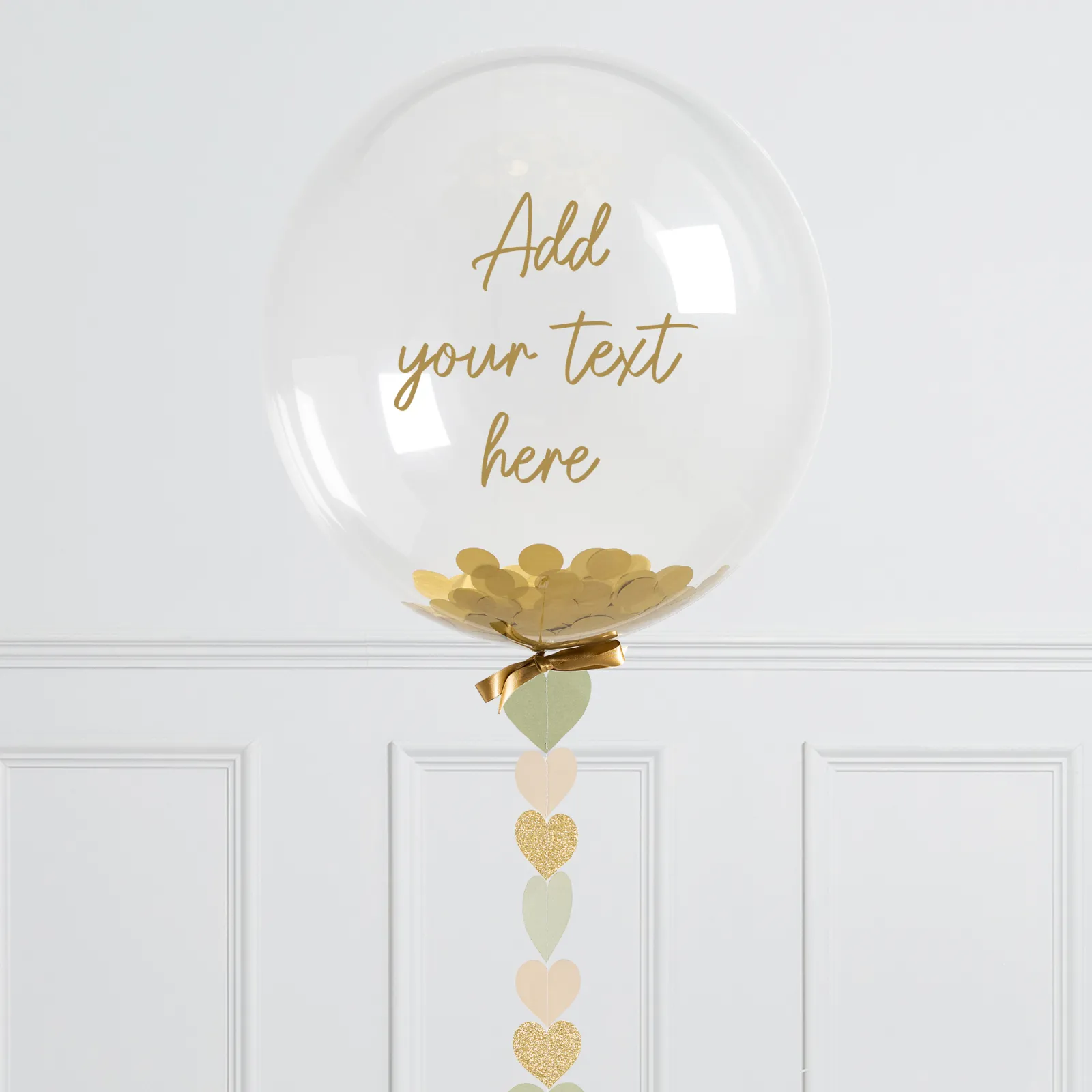 Clearance Personalised 20-Inch Bubblegum Confetti Balloon With Sage Hearts – DELIVERED INFLATED! Personalised Party|Wedding Party