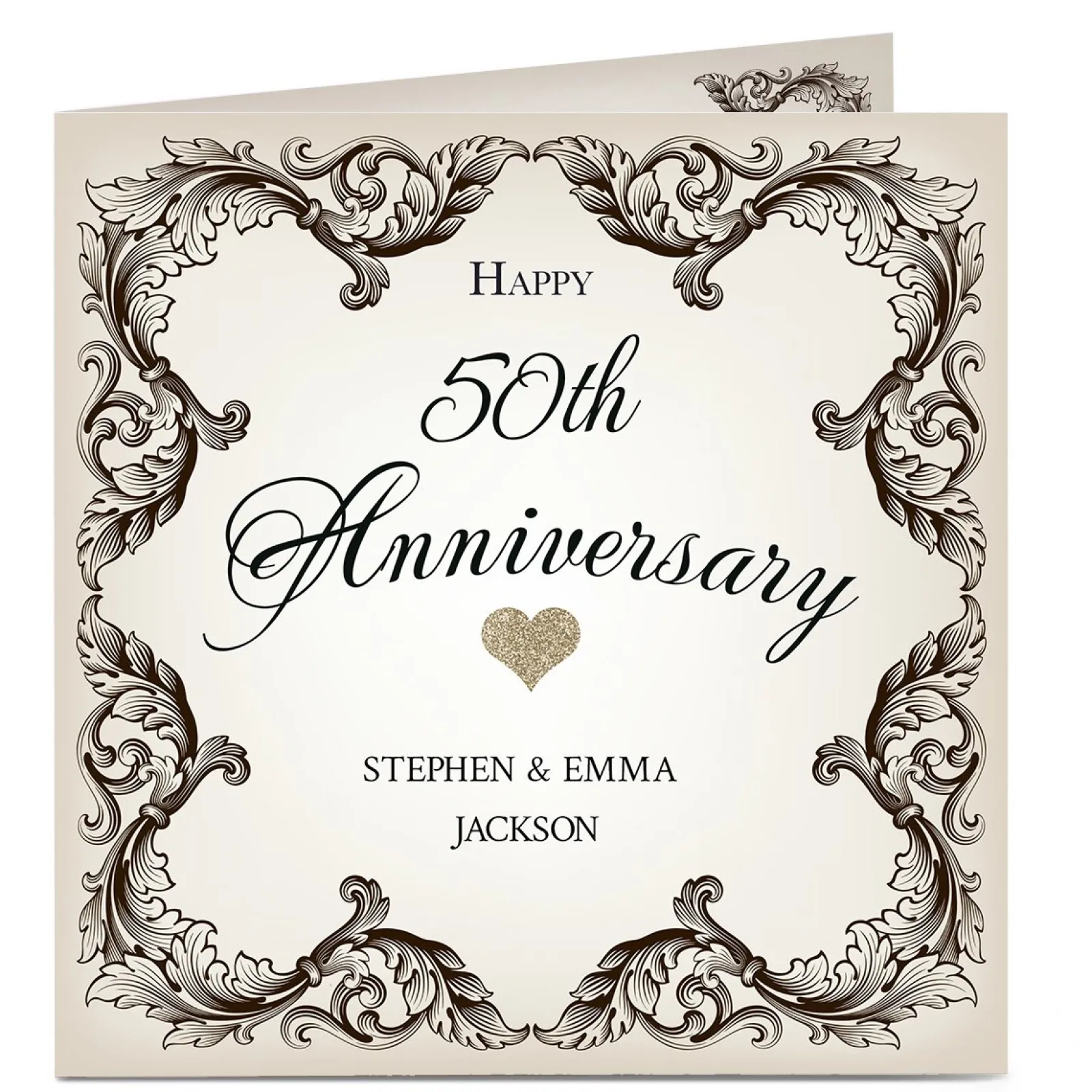 Clearance Personalised 50th Anniversary Card – Black and White Premium Square|Anniversary