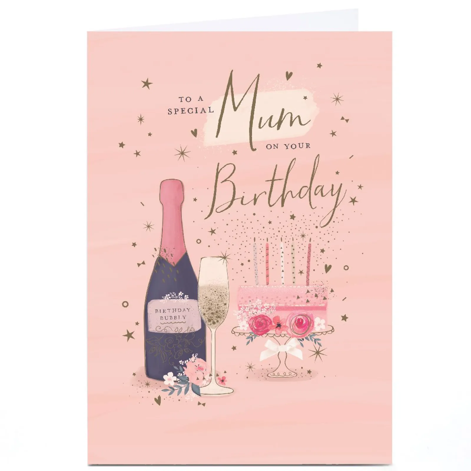 Clearance Personalised Birthday Card – Pink Champagne and Cake, To A Special Mum For Mum|Mum
