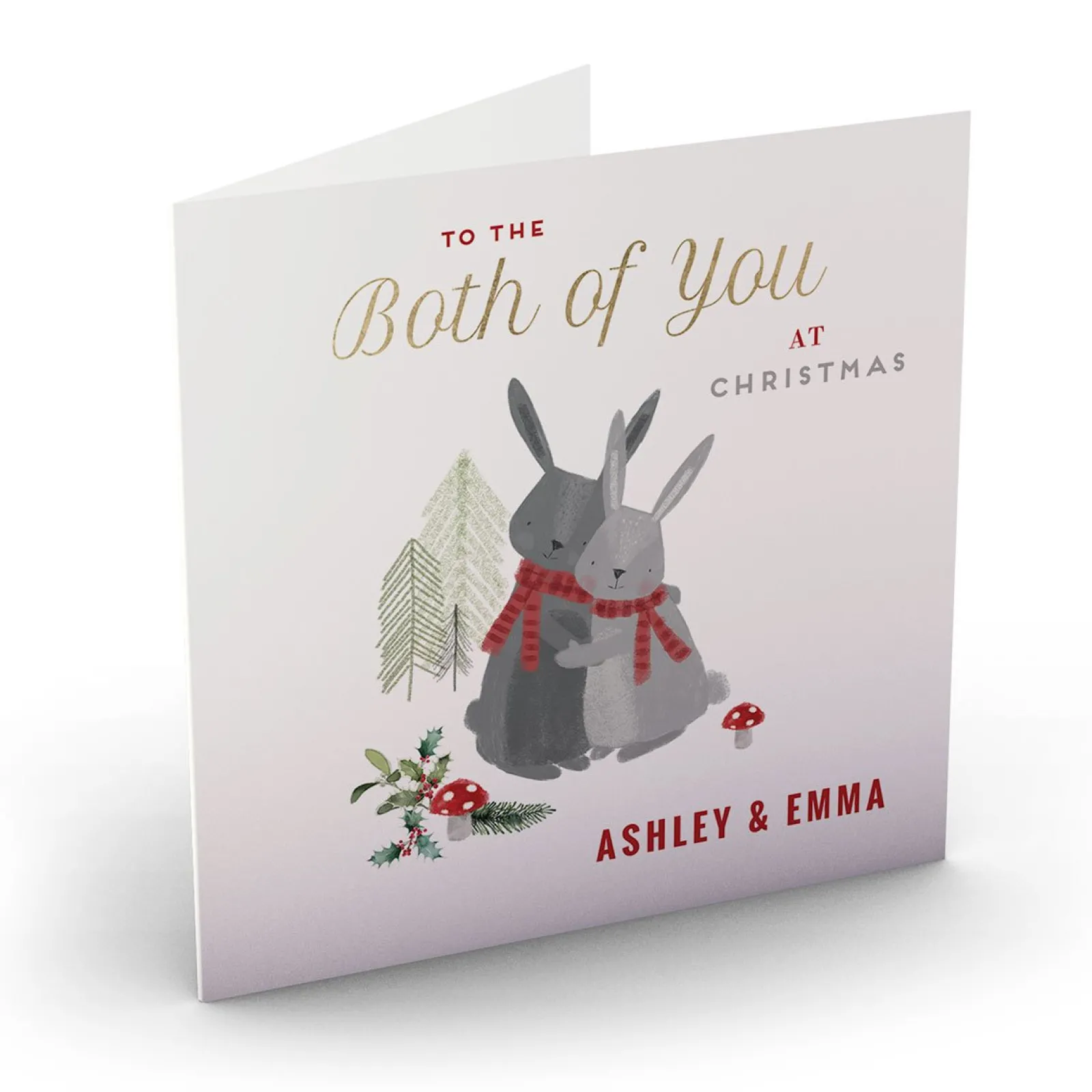 Clearance Personalised Christmas Card – To The Both Of You, Rabbits Premium Square|Christmas