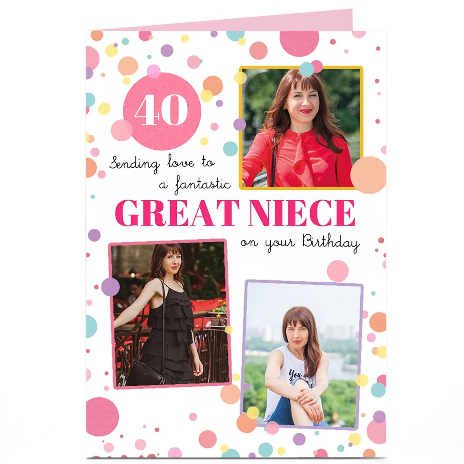 Clearance Photo Editable Age Birthday Card – Pink Spots Great Niece For Niece|40Th Birthday