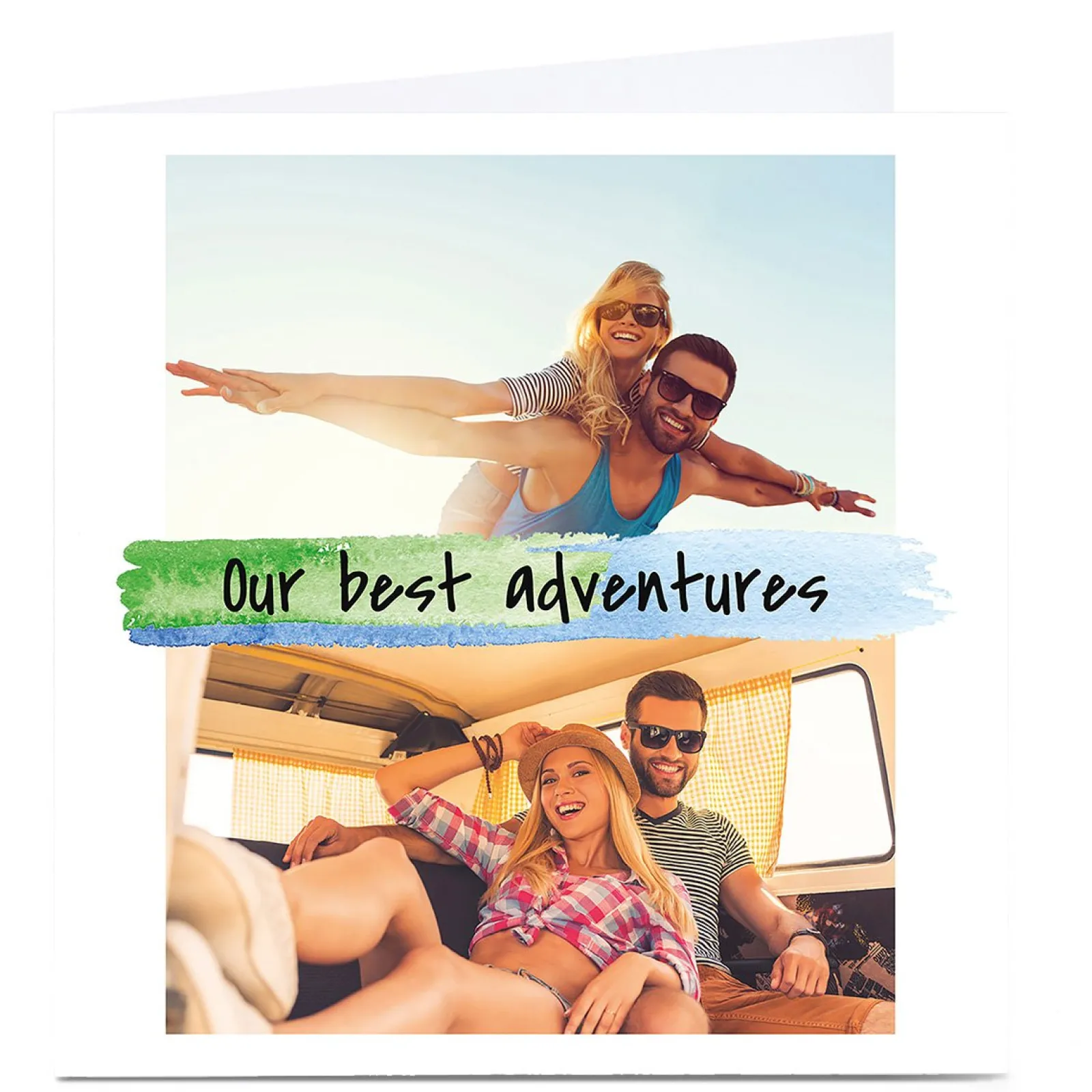 Discount Multi Photo Card – 2 Photos With Watercolour Pattern Premium Square|Any Occasion