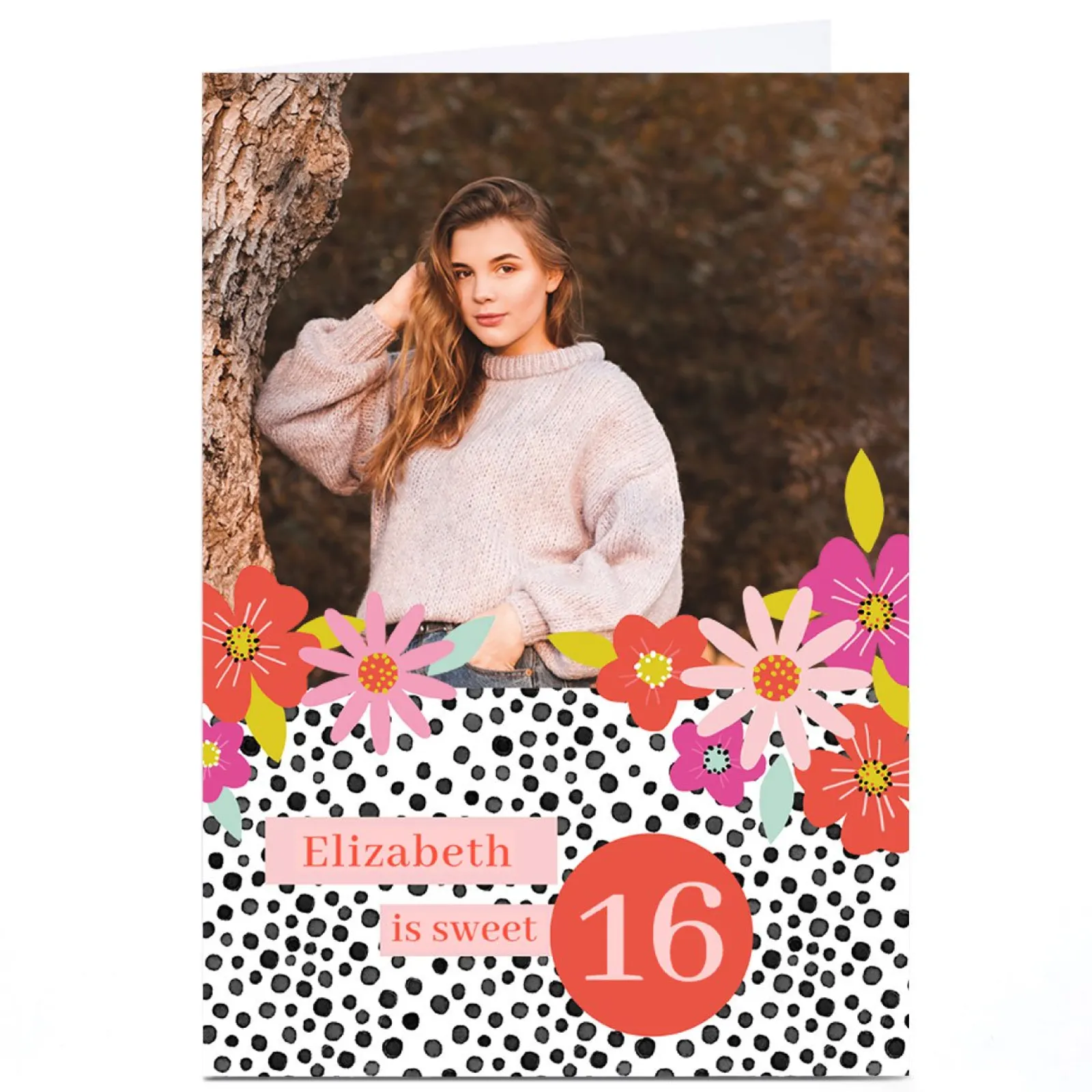 Discount Photo 16th Birthday Card – Flowers and Polkadots, Sweet 16 For Sister|For Niece
