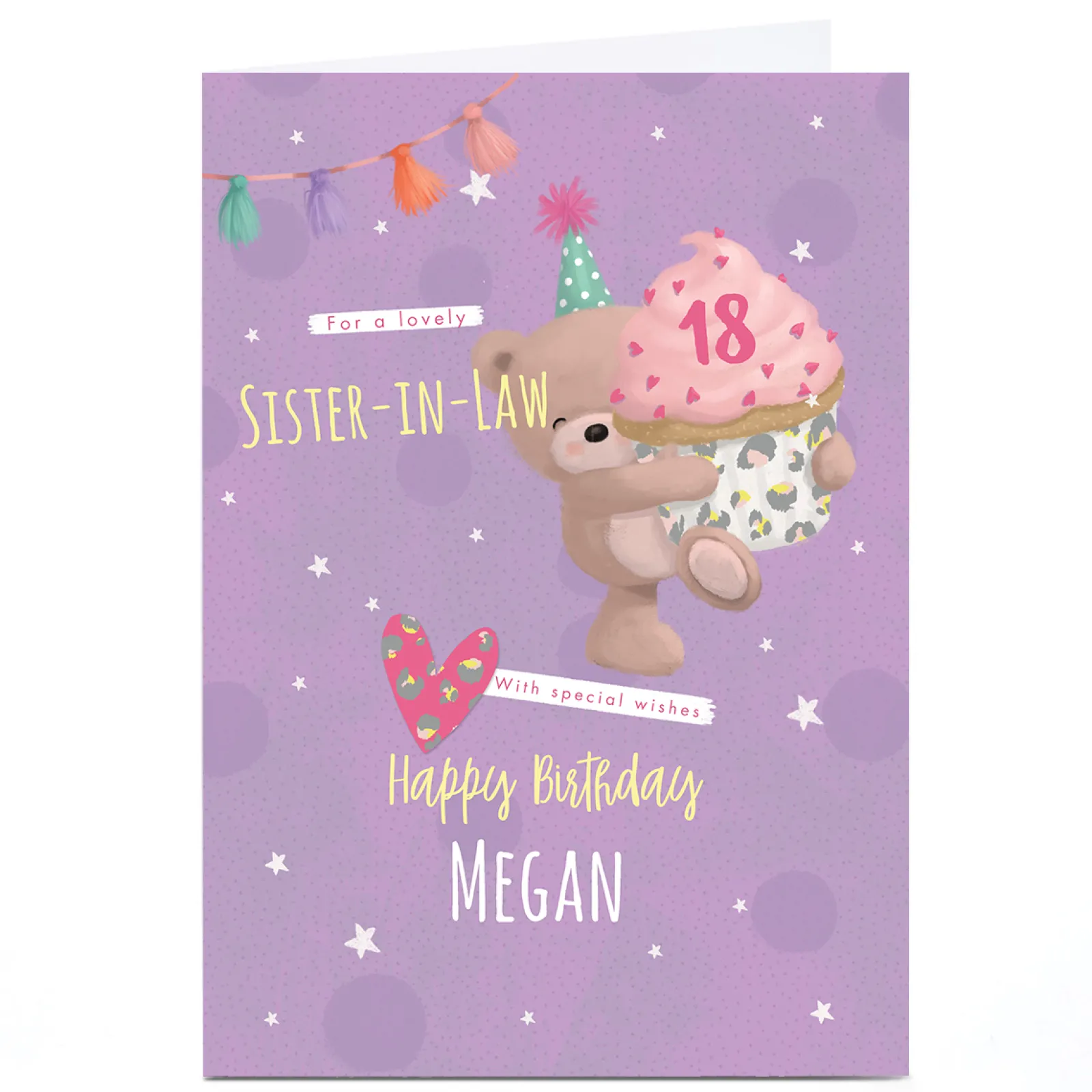 Online Hugs Bear Personalised Birthday Card – Sister-in-Law Cupcake, Editable Age Birthday|For Her