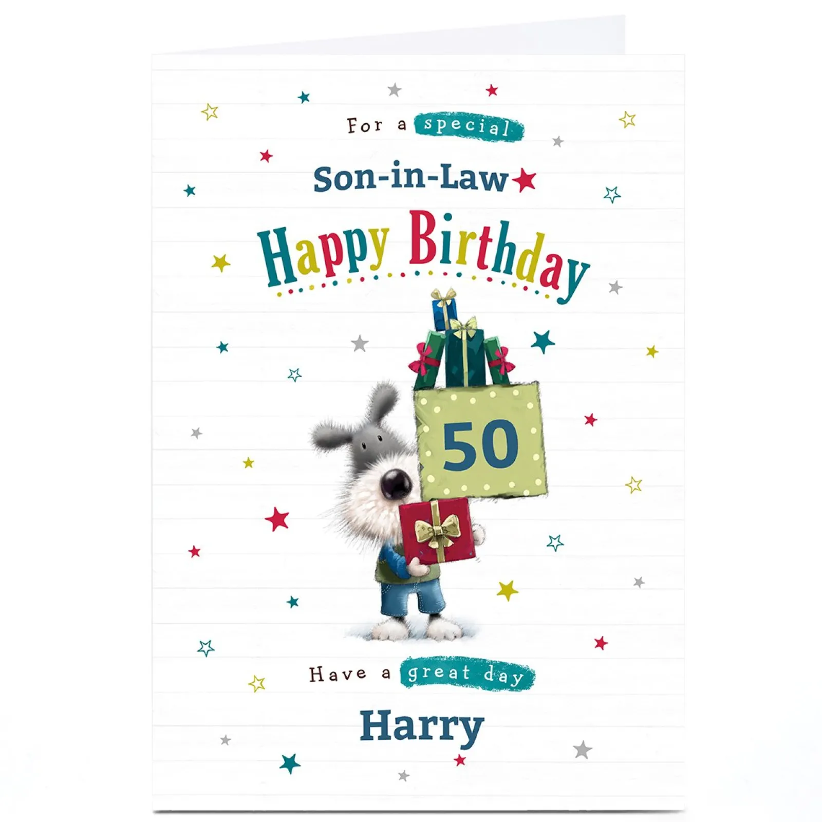 Hot Personalised Birthday Card – Dog with Presents, Son-in-Law, Editable Age BOY For Son|For Dad