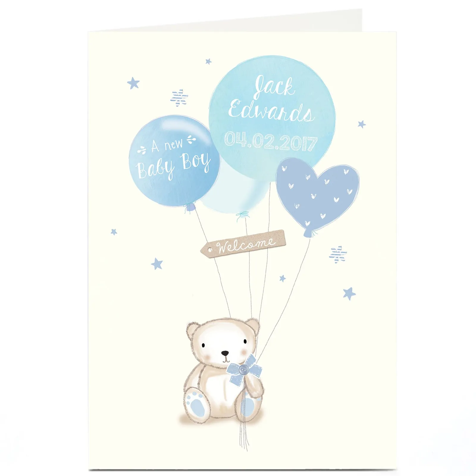 Hot Personalised New Baby Card – Baby Boy Bear & Balloons New Baby|Birthday