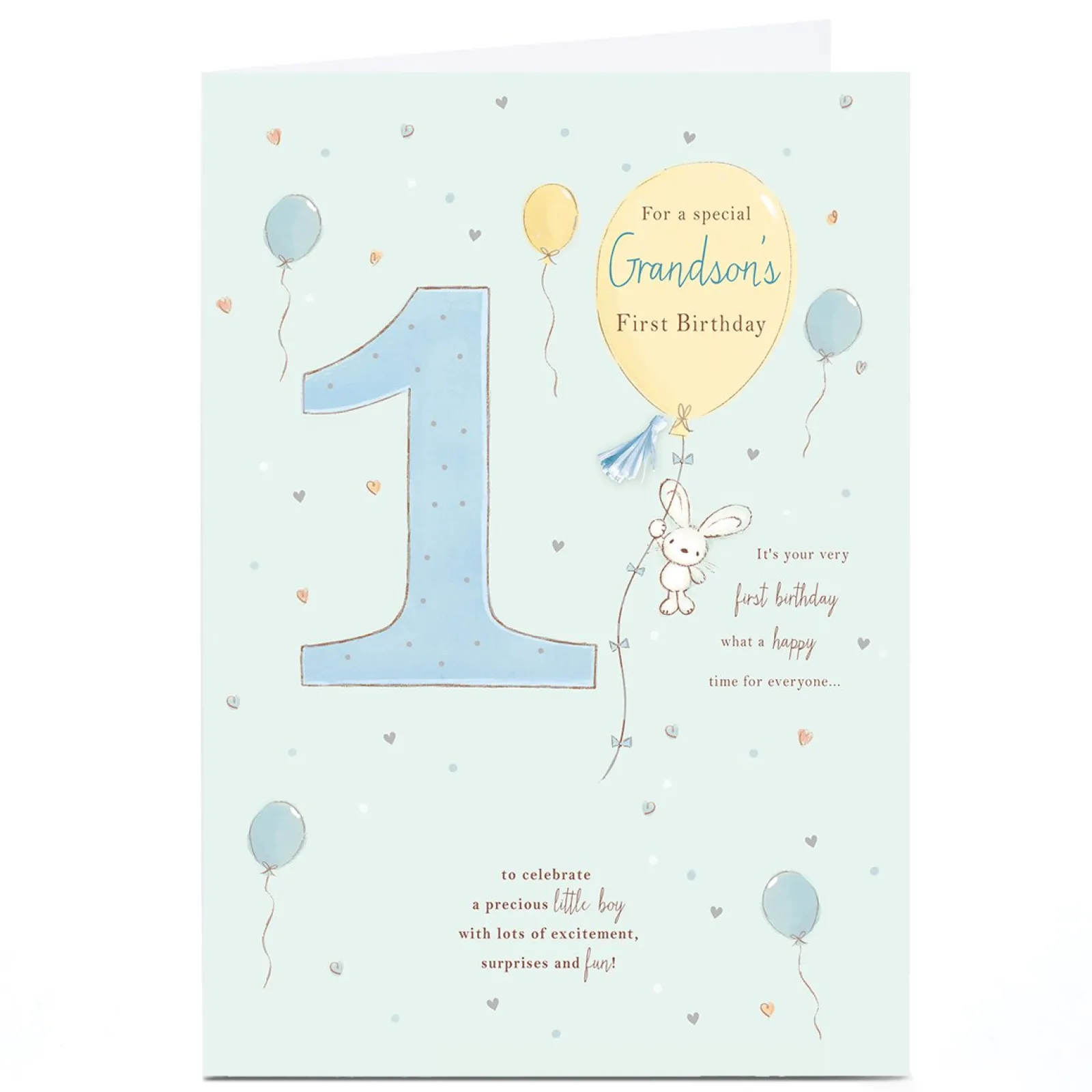 Kids Card Factory Personalised 1st Birthday Card – Bunny and Balloons, Grandson