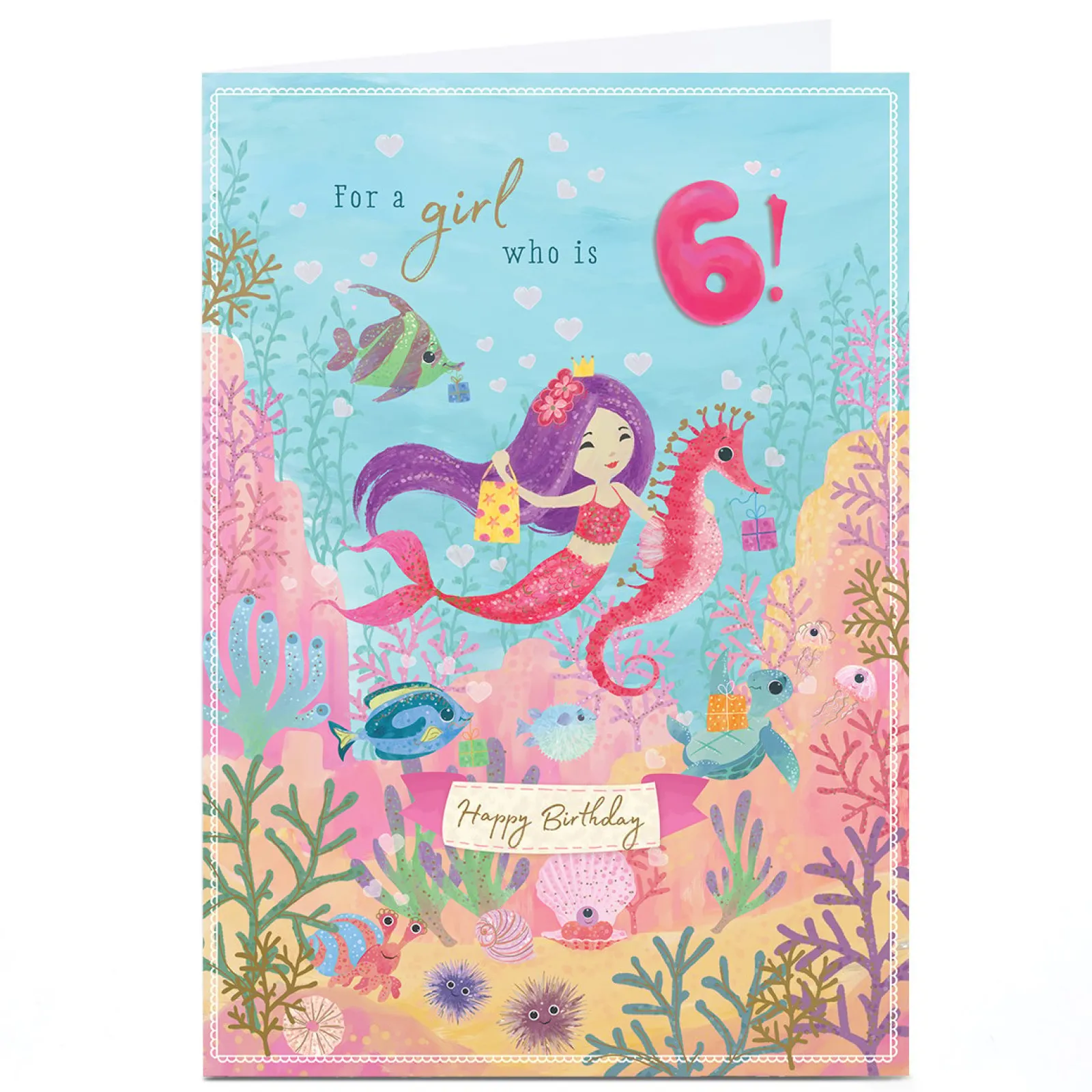 Kids Card Factory Personalised 6th Birthday Card – Mermaid and Seahorse