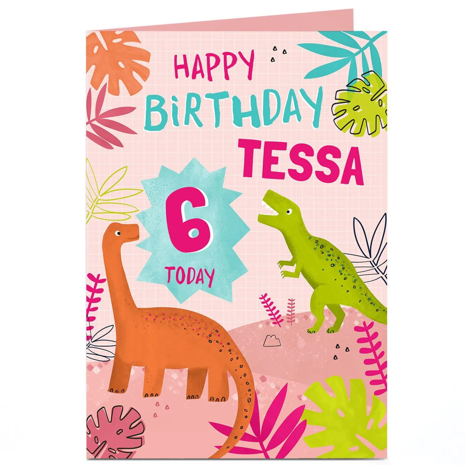Kids Card Factory Personalised Birthday Card – Pink Dinosaur Name and Age