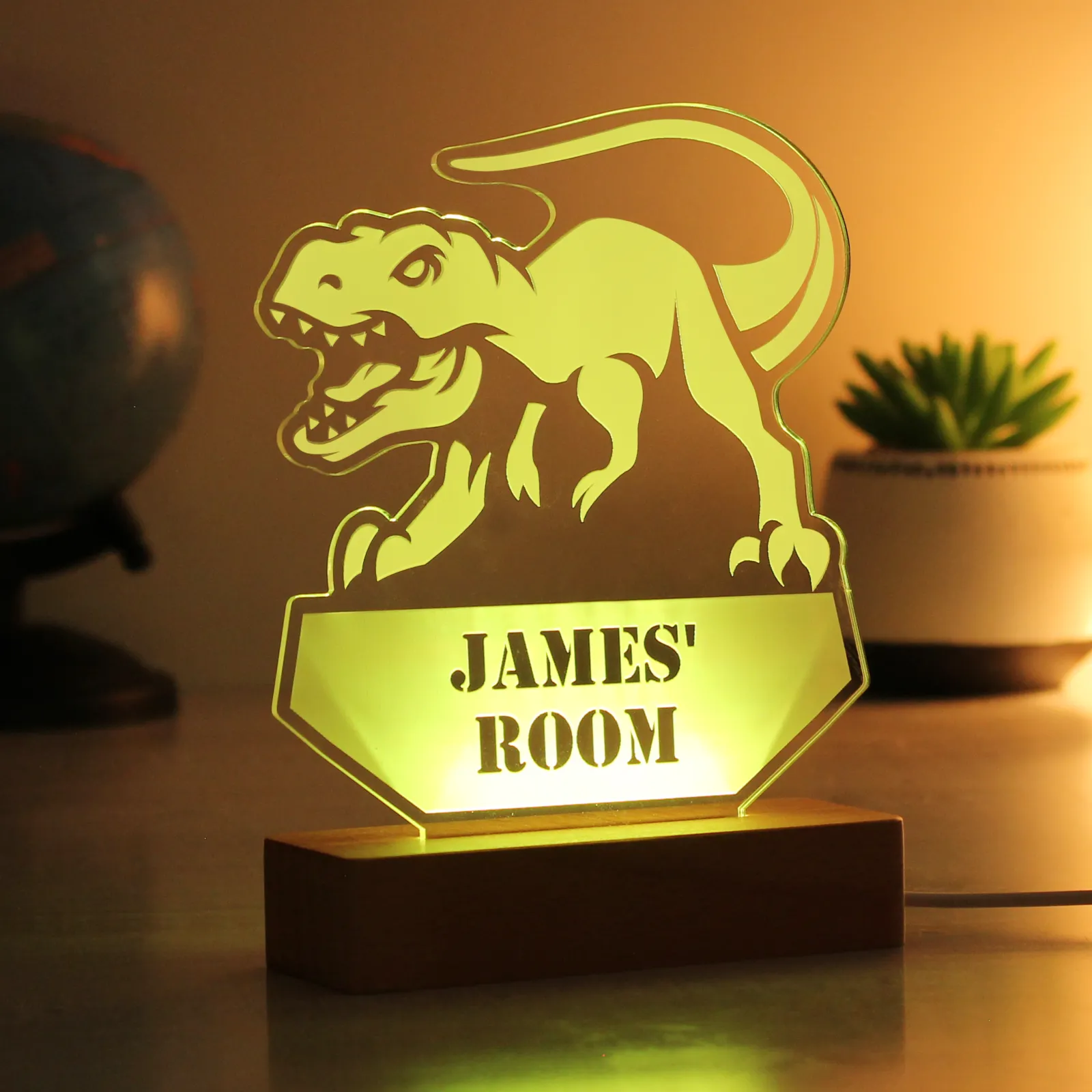 Kids Card Factory Personalised Dinosaur Wooden Based LED Light