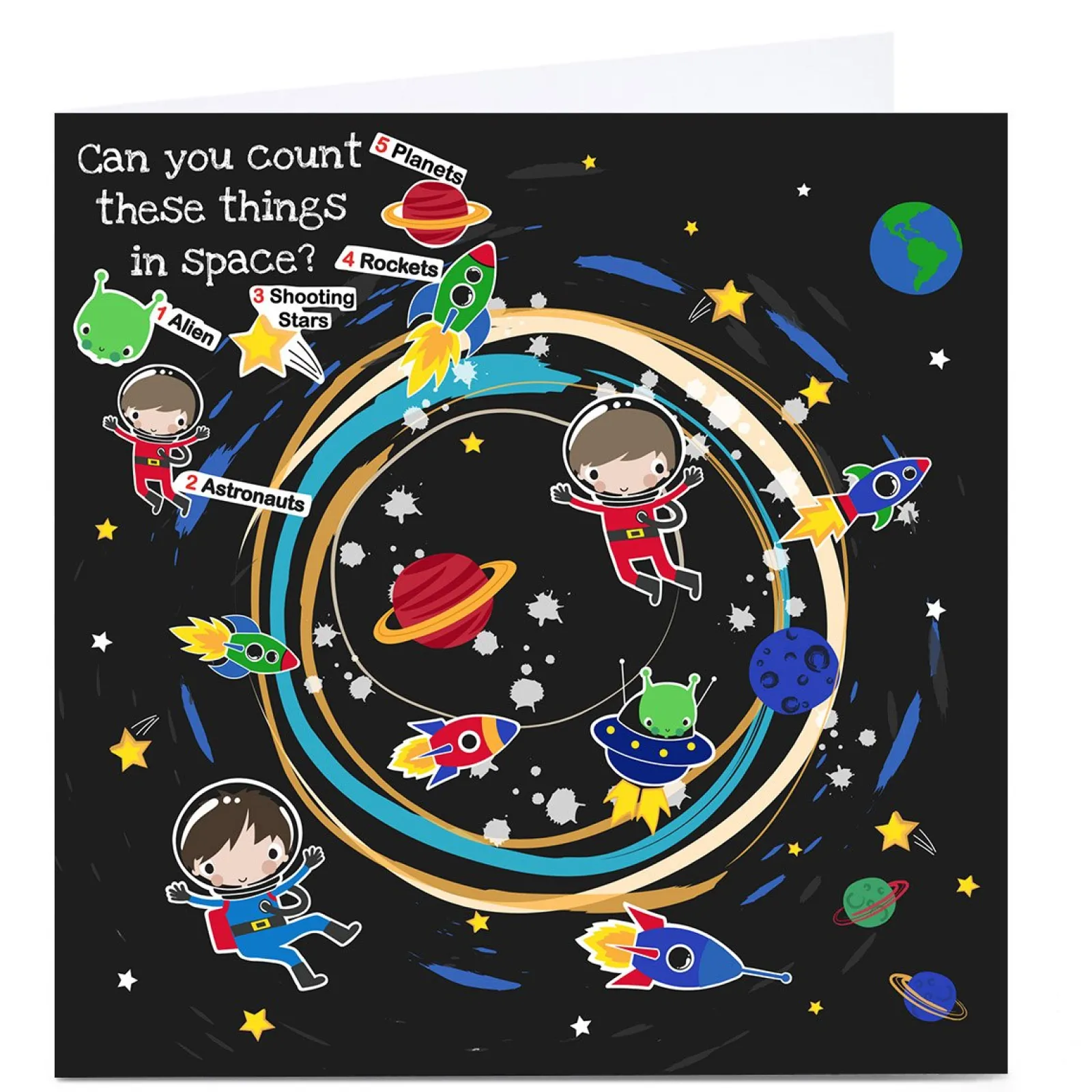 Kids Card Factory Personalised Rachel Griffin Birthday Card – Can You Count, Space Items?