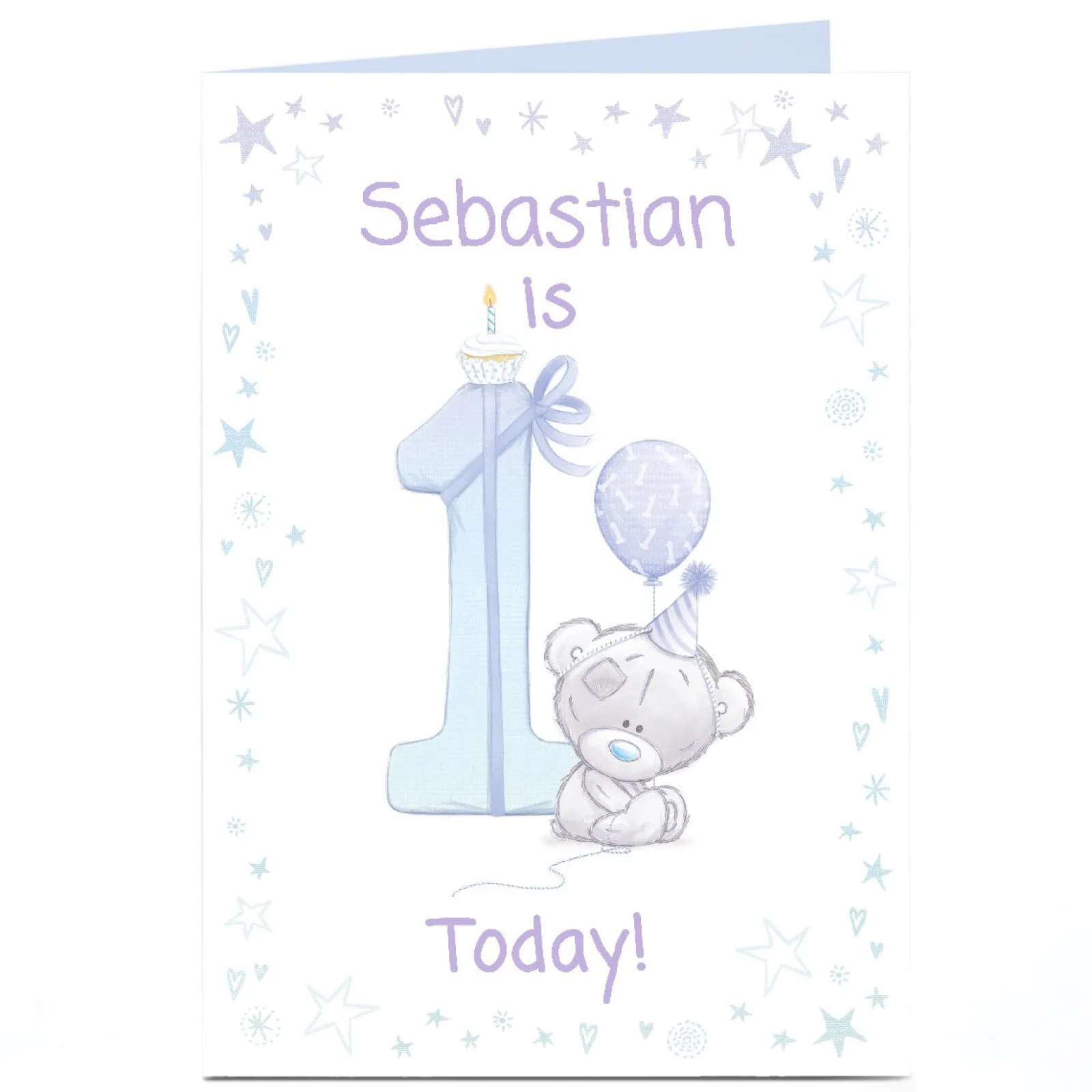 Kids Card Factory Personalised Tatty Teddy 1st Birthday Card – Blue Bear, 1 Today