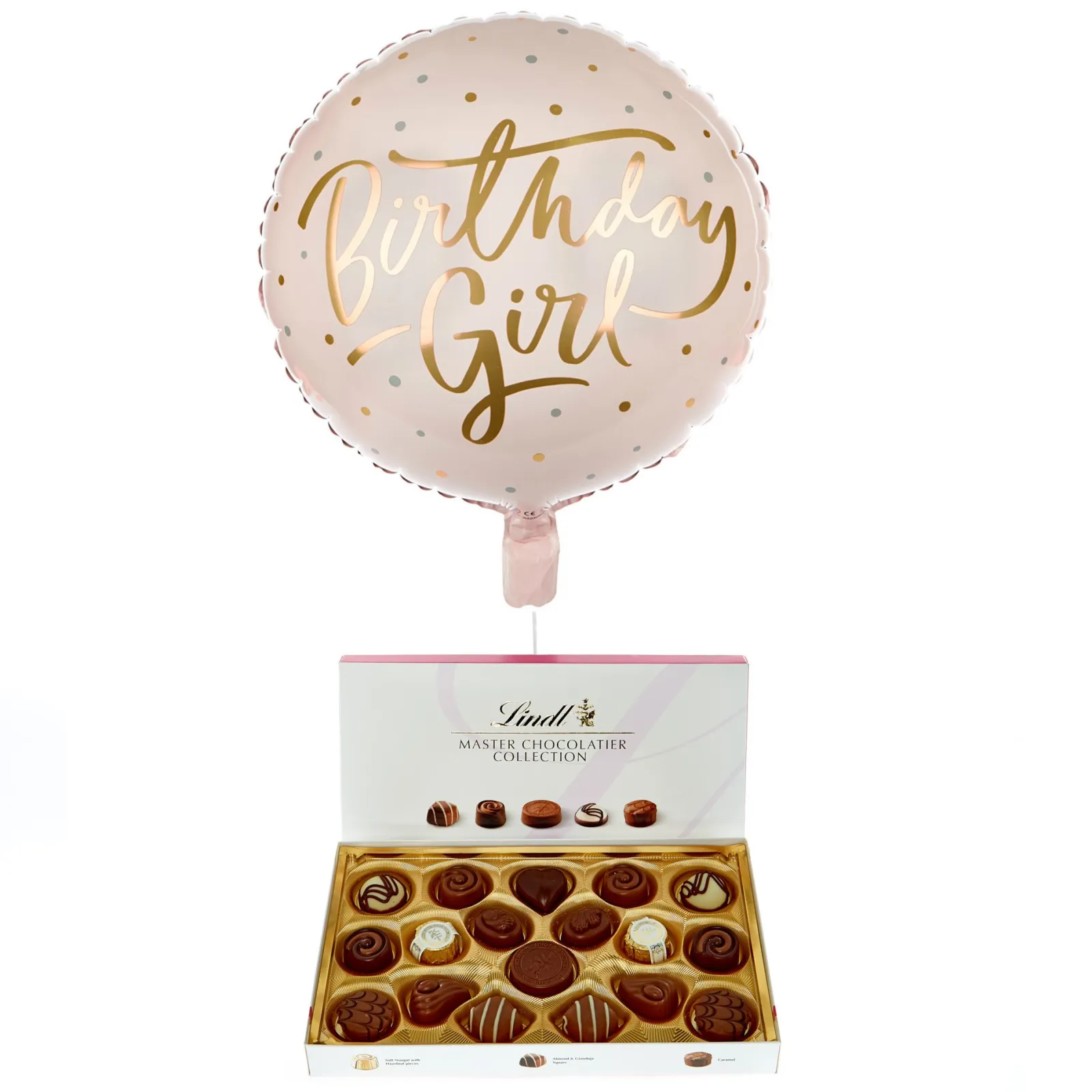 Kids Card Factory Pink & Gold Birthday Girl Balloon & Lindt Chocolates