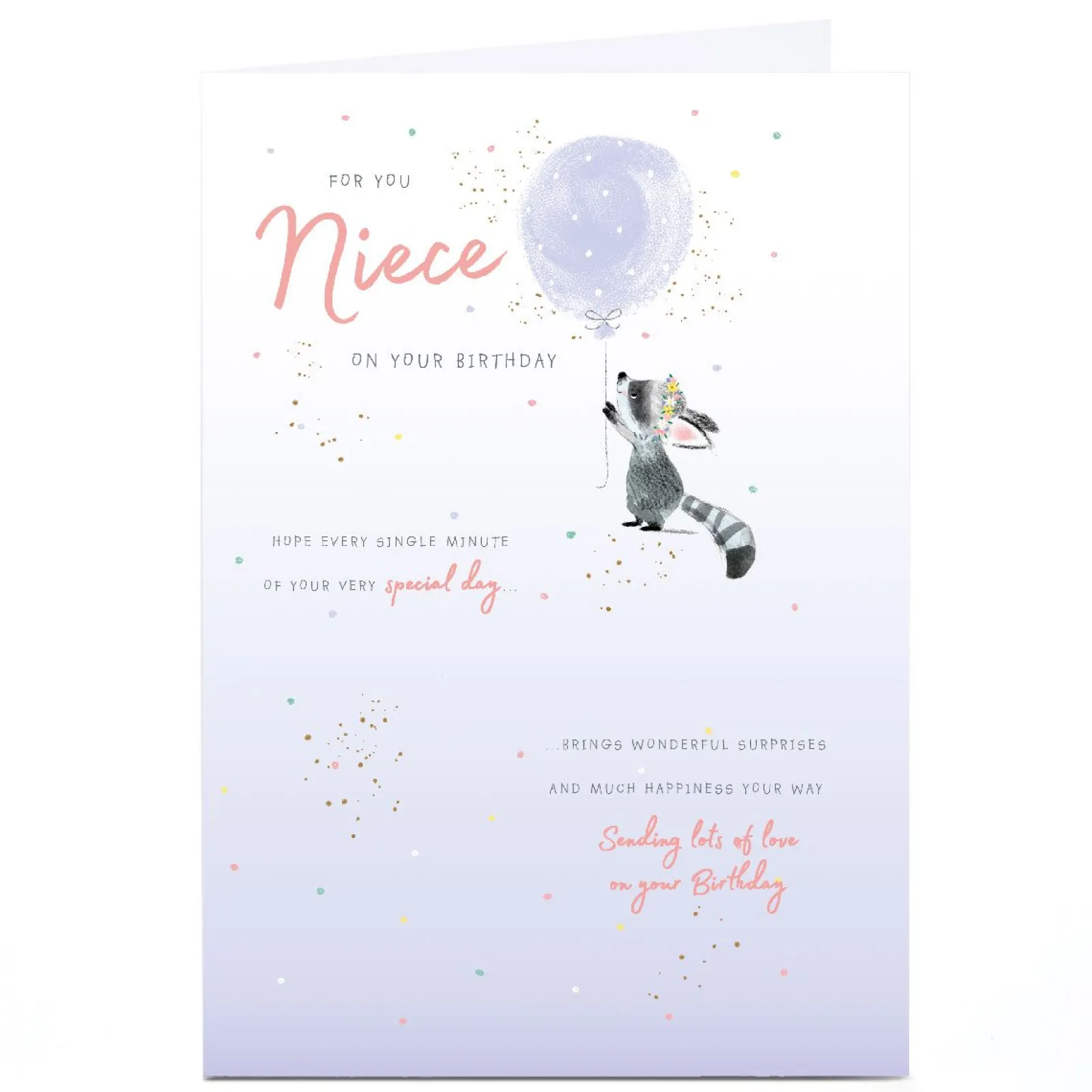 New Personalised Birthday Card – Raccoon Sparkle Balloon, Niece Kids For Niece|For Kids