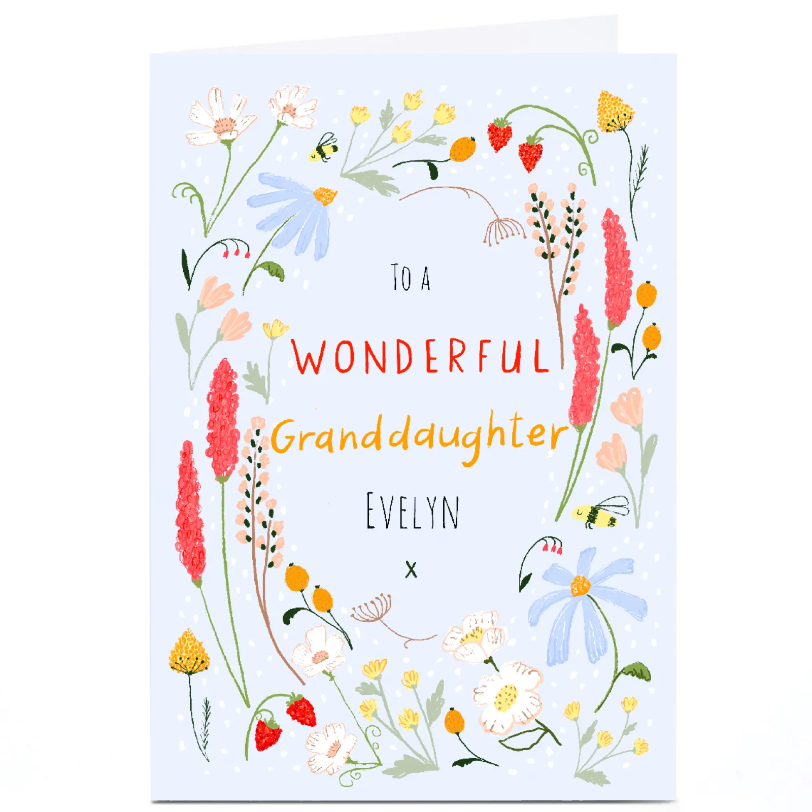 New Personalised Emma Valenghi Birthday Card – Blue Floral, Granddaughter For Granddaughter|Granddaughter