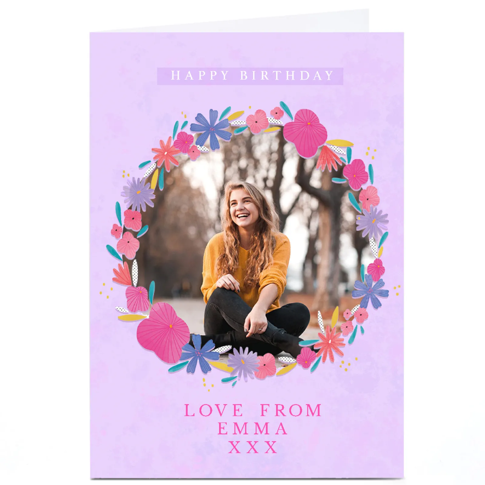 New Photo Henrietta Overton Birthday Card – Pink and Purple Flower Wreath Kids For Sister|For Niece