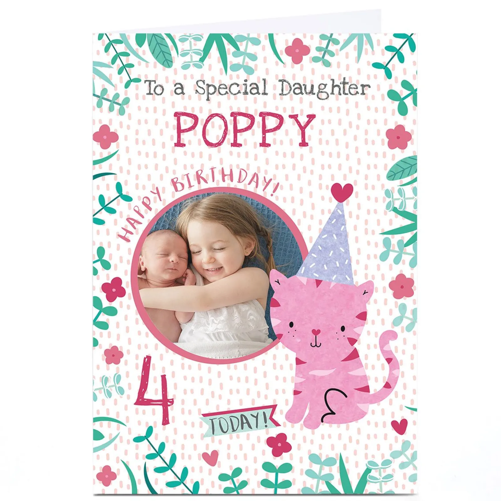 New Photo Juniper & Rose Birthday Card – Pink Tiger, Editable Age Kids For Granddaughter|For Daughter