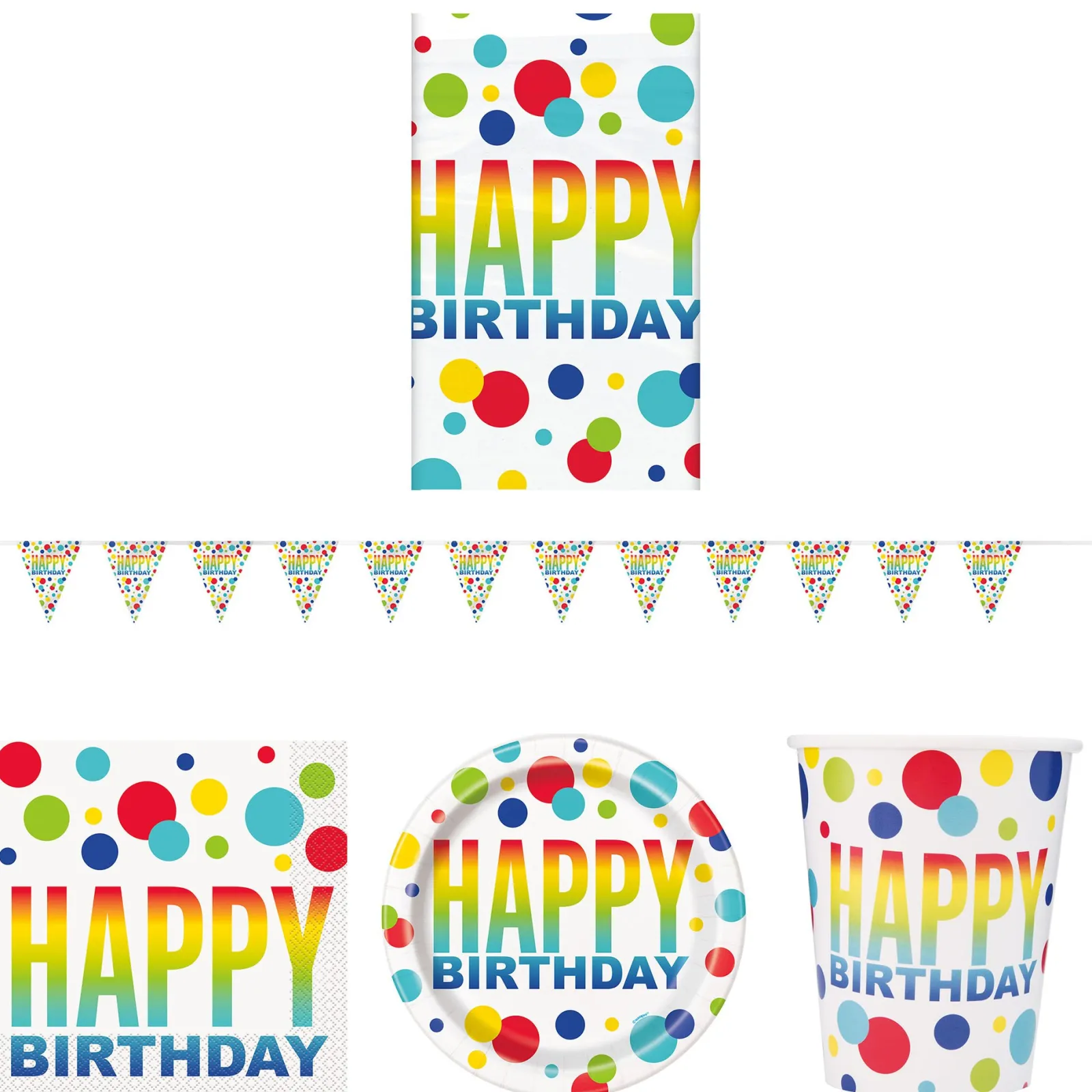 New Rainbow Spots Birthday Tableware & Decorations – 16 Guests Tableware|Birthday Party
