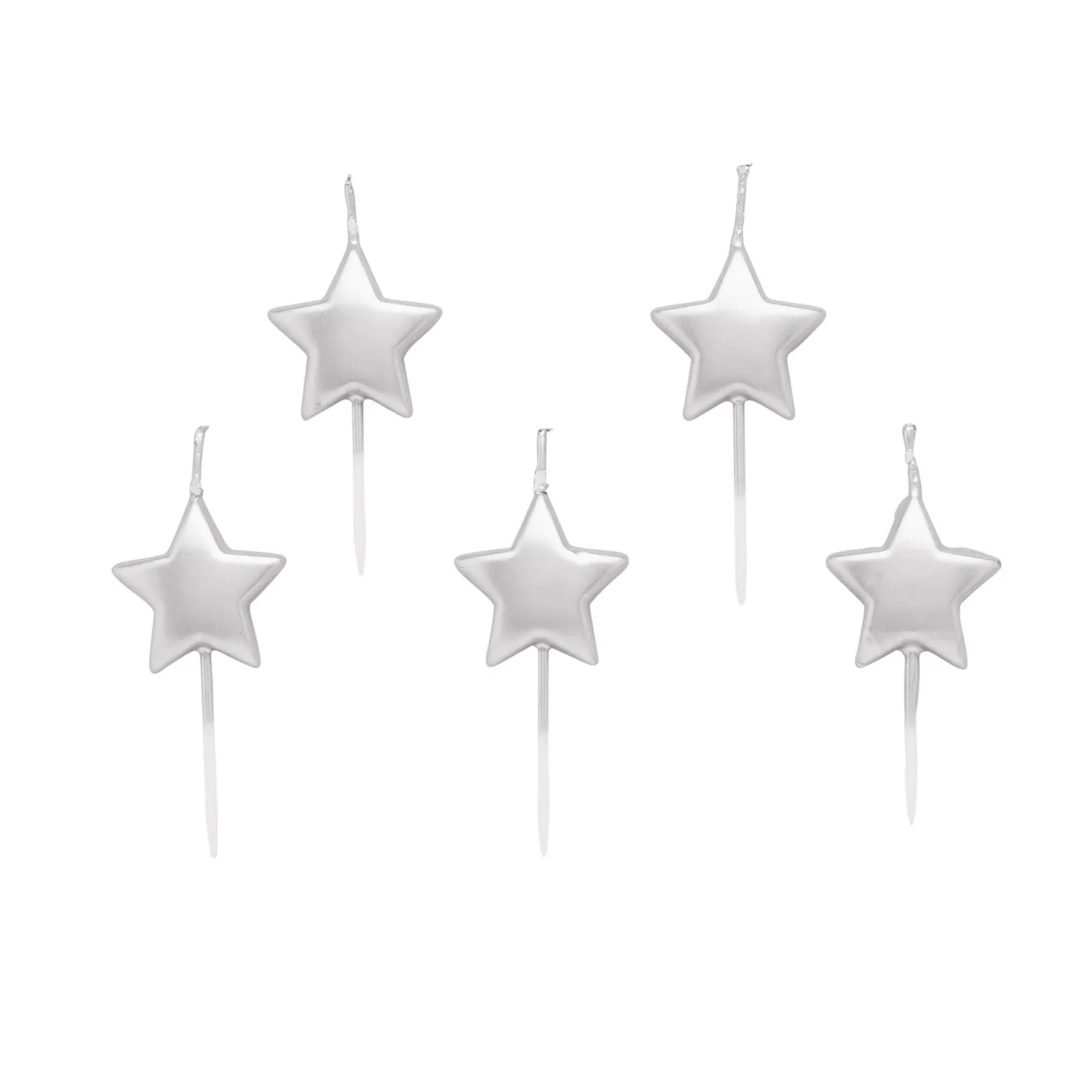 New Silver Metallic Star Cake Candles – Pack of 5 Cake Candles|Birthday Party