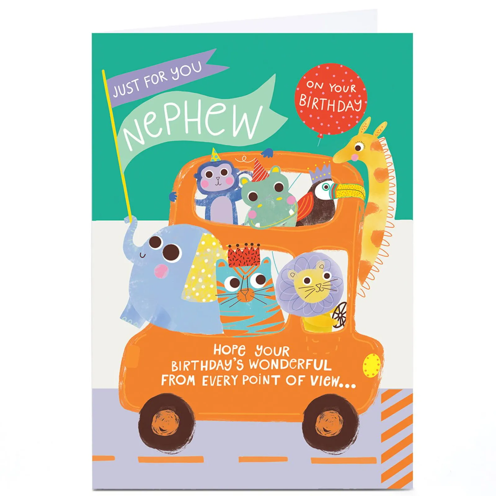 Online Personalised Birthday Card – Wild Animals Car Ride, Nephew Kids For Nephew|For Kids