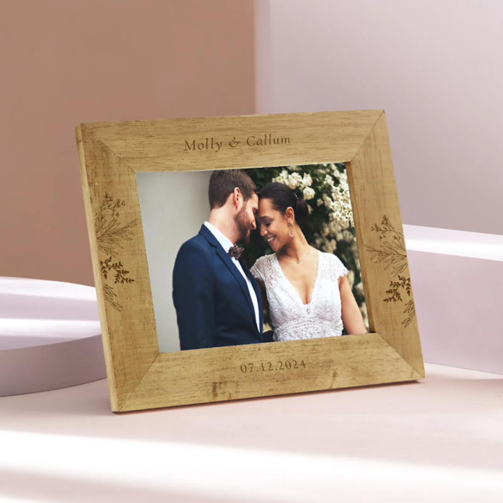 Outlet Personalised Engraved Wooden Picture Frame – Wedding, Names & Date Floral Design Personalised Engraved Gifts|Photo Frames