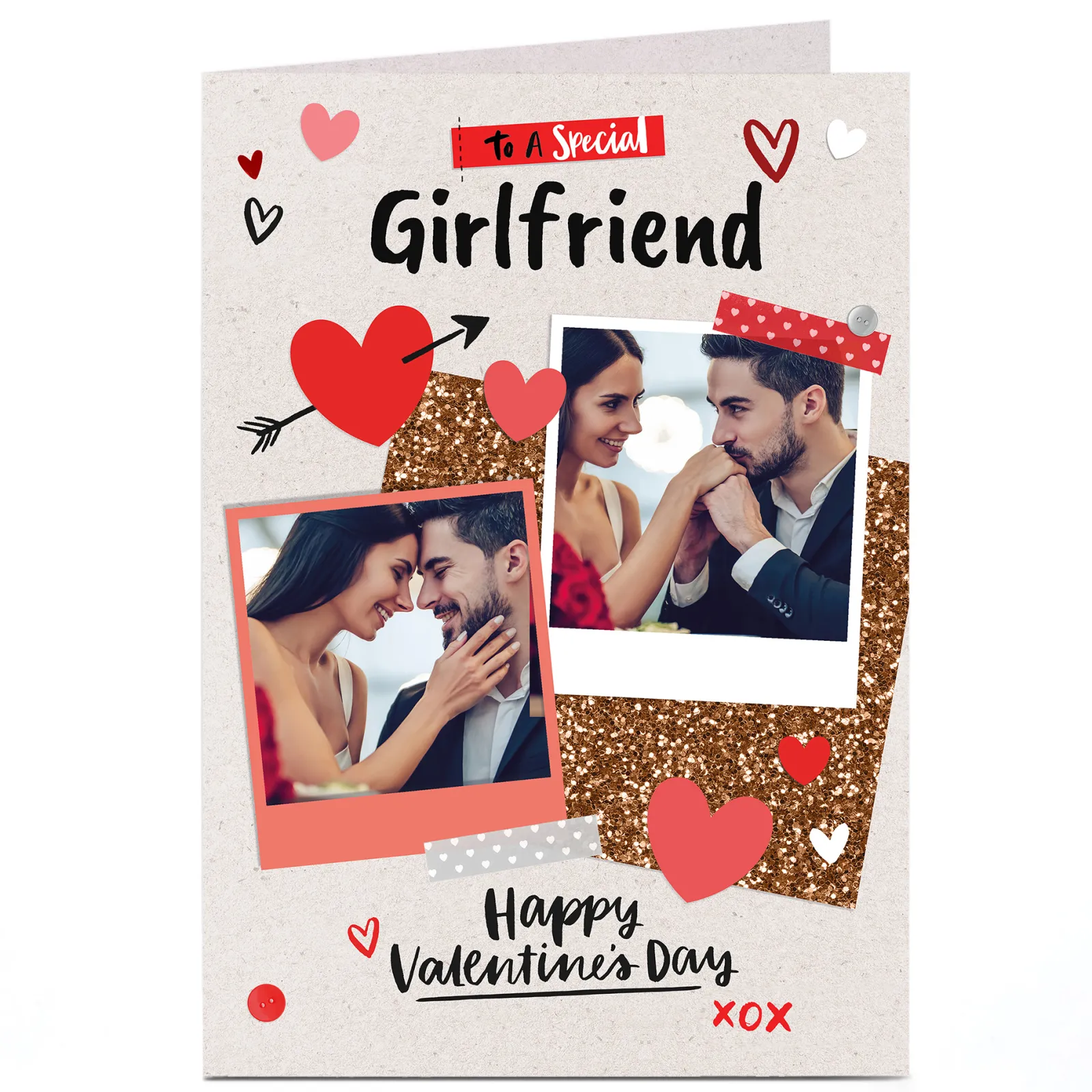 Outlet Photo Upload Valentine’s Card – Red Hearts & Polaroids, Girlfriend Photo