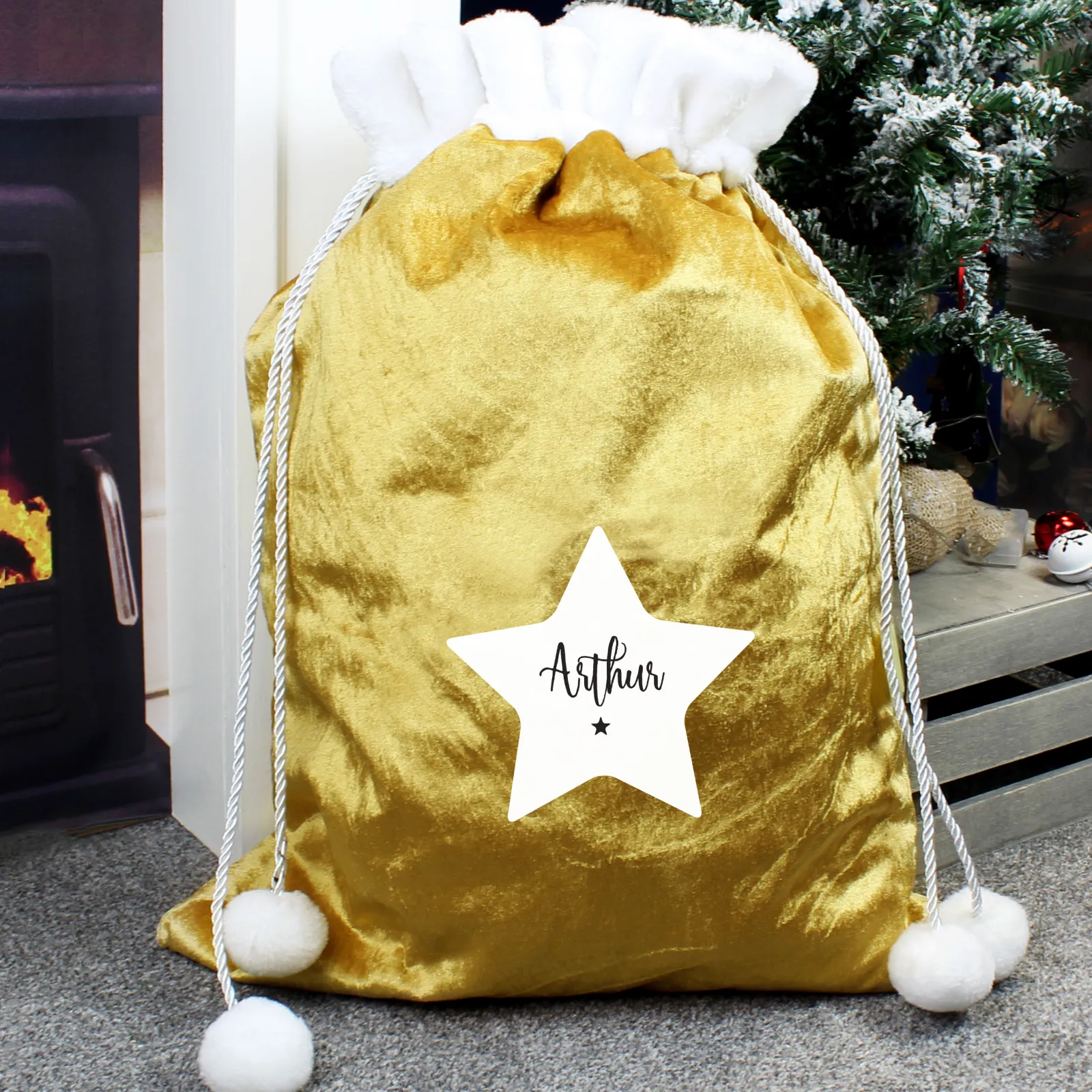 Personalised Star Luxury Pom-Pom Gold Sack Kids Gifts For Kids|Christmas Gifts