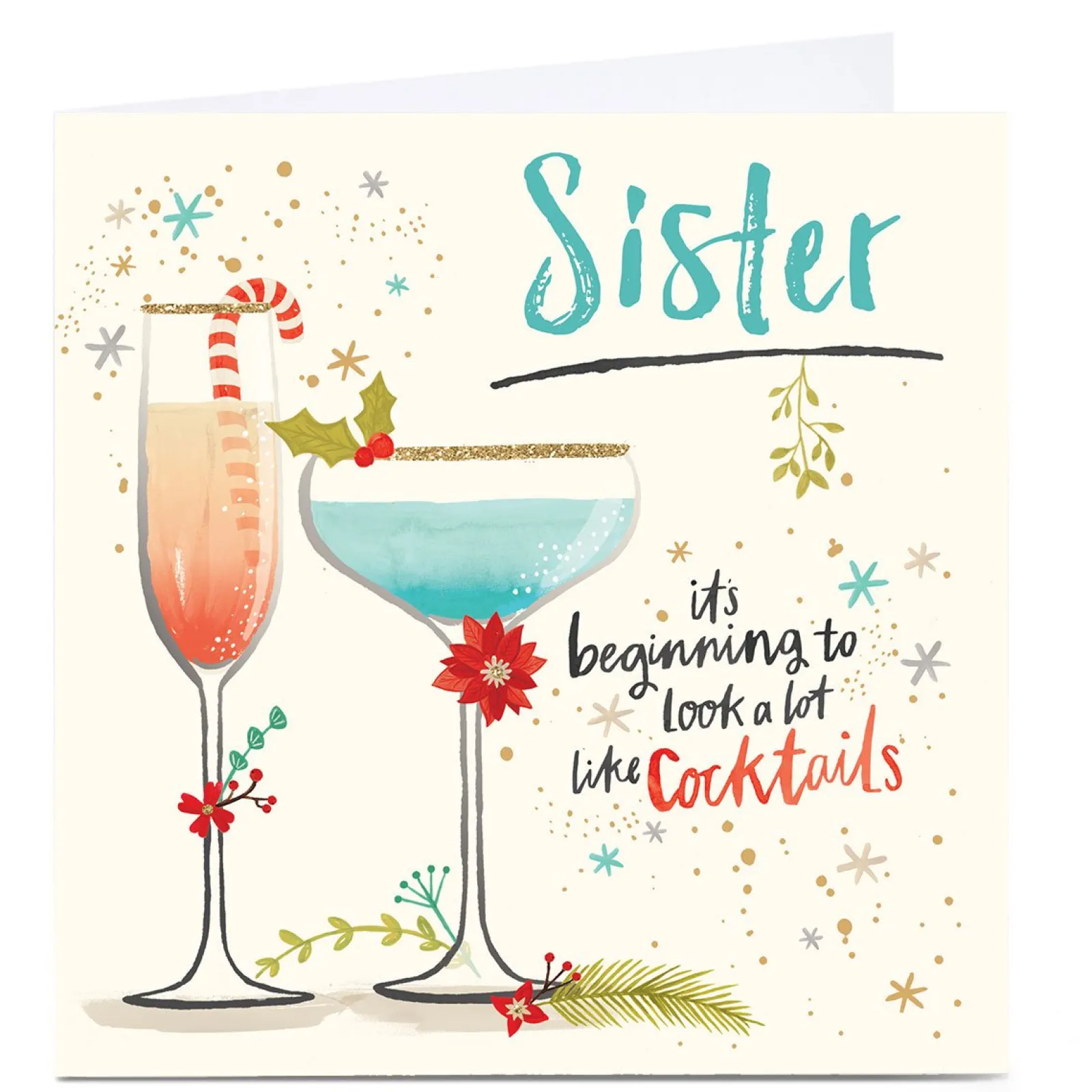 Sale Personalised Christmas Card – Beginning To Look a Lot Like Cocktails, Sister Christmas